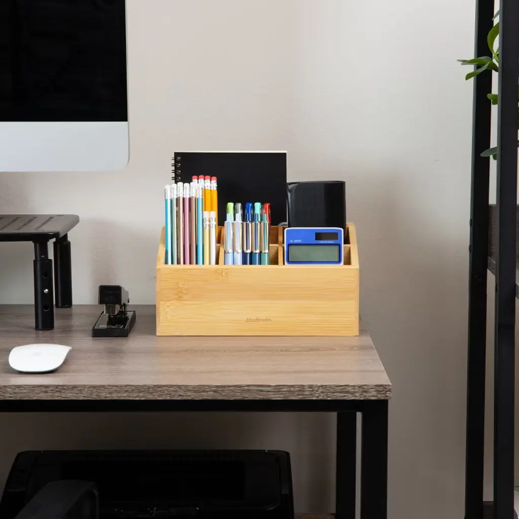 Mind Reader Desktop Organizer, 7-compartment, Office Essentials, Modern, Office, Bamboo, 9.25"l X 7.25"w X 4.5"h, Brown