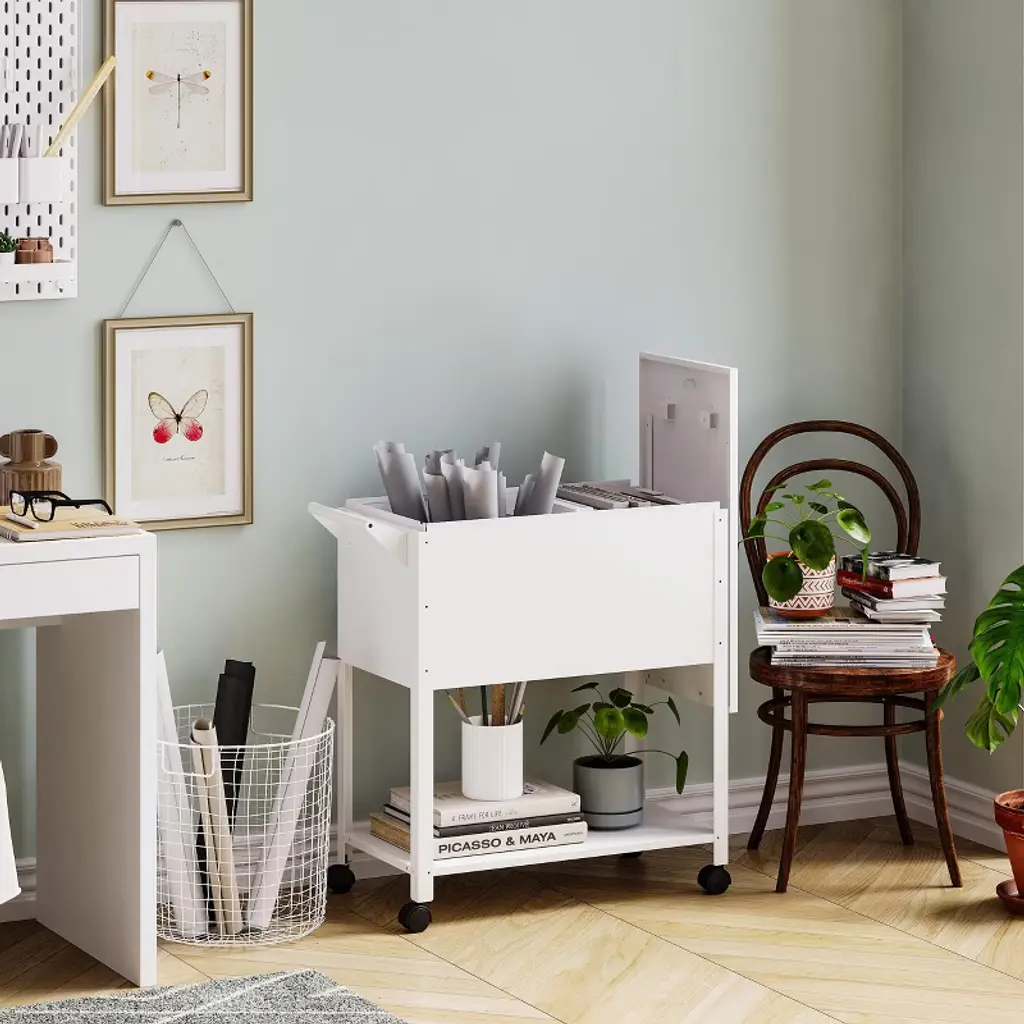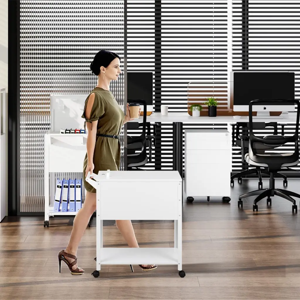 Mlezan Metal Rolling File Cart: Mobile With Wheels, Lockable Storage For Legal/a4 Files. White Filing Cabinet Organizer For Home Or Office.