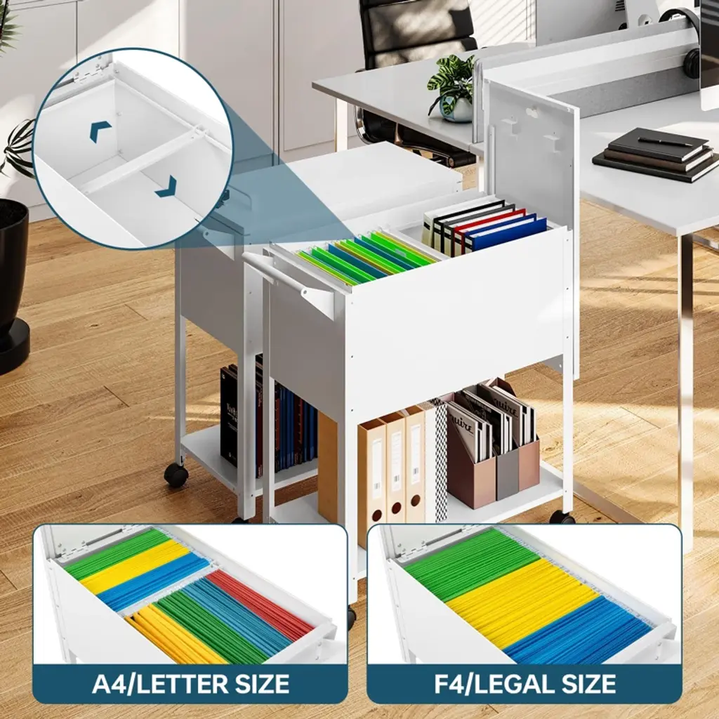 Versatile & Secure Storage: Our rolling file cabinet combines mobility, durability, and security with 4 swivel wheels, a lockable steel cover, and a sturdy steel frame. Perfect for offices or homes, it’s easy to assemble and built to last. Your reliable organization solution!