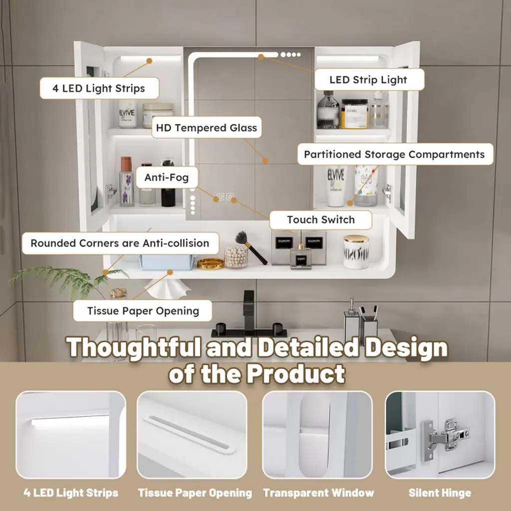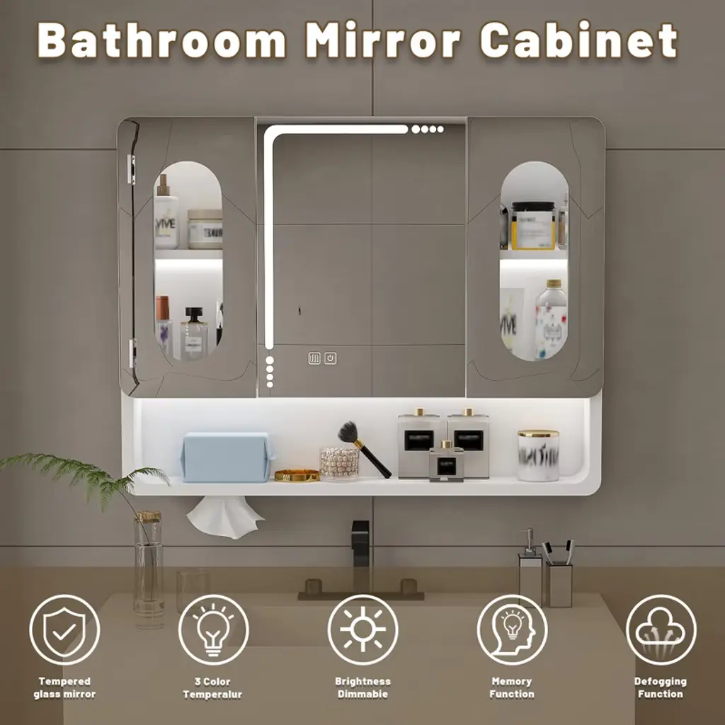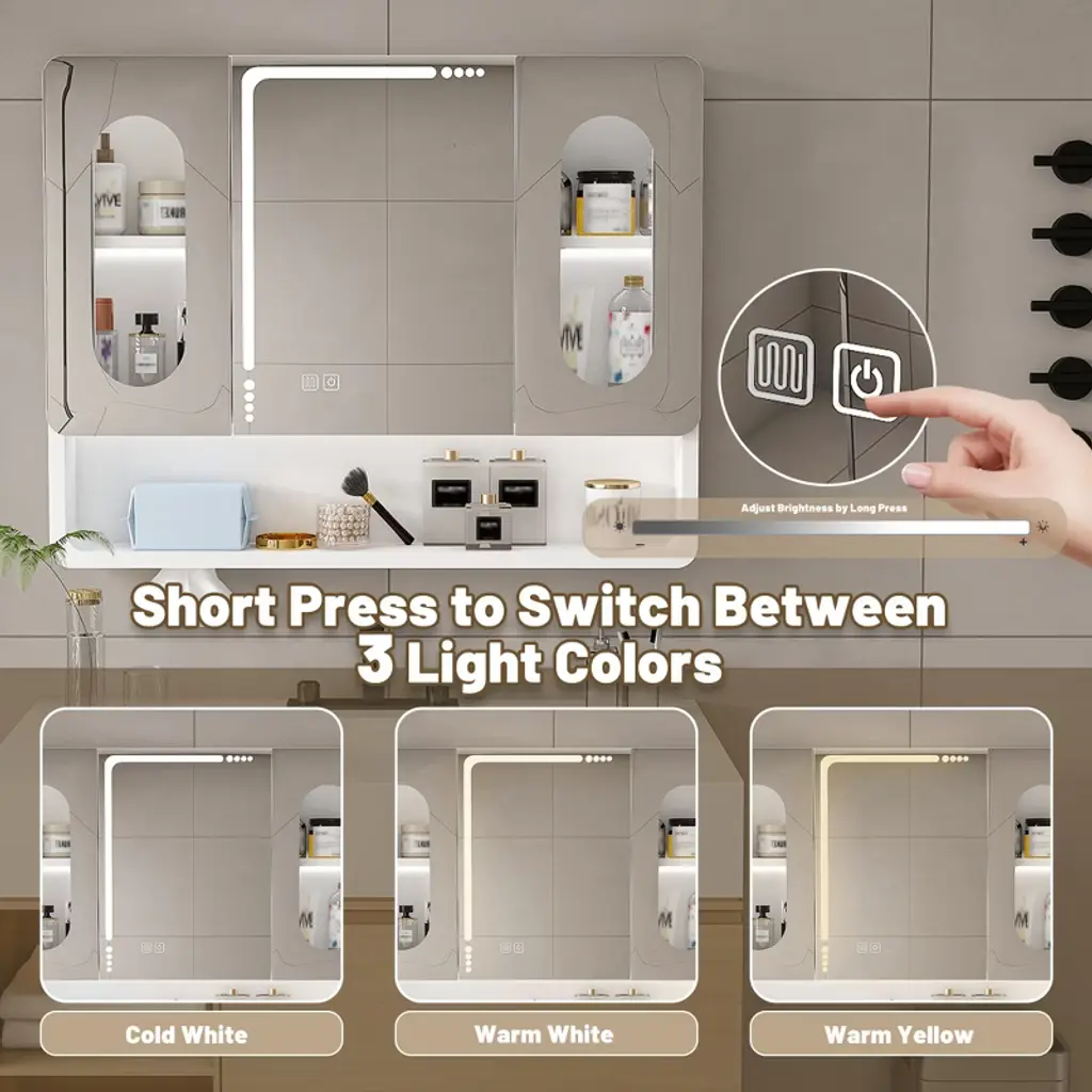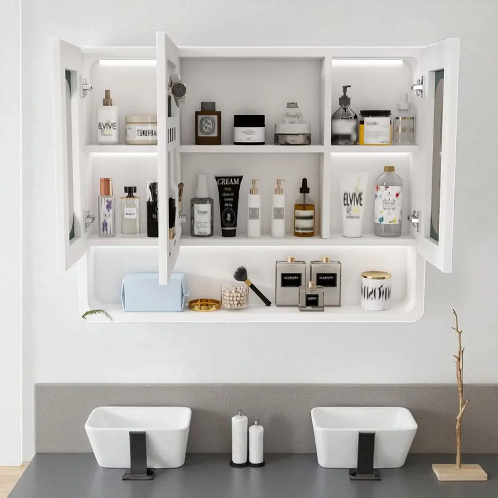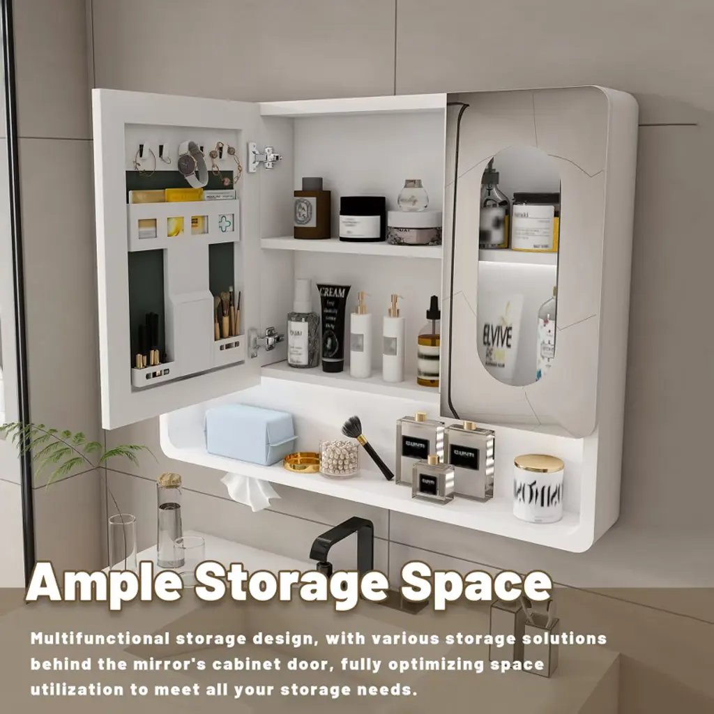 Product Overview This modern wall-mounted bathroom cabinet is crafted from premium aluminum alloy, offering a sleek design that maximizes storage while saving floor space. Its durable, corrosion-resistant build ensures long-lasting use, while the thoughtful layout provides versatile organization for your bathroom and beyond. Specifications Product Name: Bathroom Cabinet Main Material: Aluminum Alloy Mounting Type: Wall-Mounted Finish Type: Modern Painted Finish Storage Features: 3 Compartments, 5 Hooks, Hidden Rack Weight Capacity: Suitable for toiletries and daily essentials Product Features [Health & Safety Assurance] Made from high-quality aluminum alloy, this cabinet is corrosion-resistant, durable, and free from harmful formaldehyde for a safe and healthy environment. [Wall-Mounted Space Saver] Designed to maximize small bathrooms, this cabinet frees floor space while offering generous storage for toiletries, cosmetics, and accessories. [Modern Aesthetic Design] Clean lines and a sleek finish add a stylish touch to your bathroom, corridor, or laundry room, blending seamlessly with modern décor. [Silent Magnetic Sealing System] Equipped with advanced magnetic closures that prevent slamming, ensuring quiet and smooth door operation. [Ample Storage with Smart Layout] Features 3 compartments, 5 hooks, and a hidden mask rack—perfect for organizing towels, skincare, masks, and everyday essentials. Product Dimensions Assembled Length: 35.43" Assembled Width: 27.56" Assembled Height: 4.92" Product Weight: 16.31 lbs Suitable Scenarios Ideal for bathrooms, laundry rooms, or corridors Perfect for organizing toiletries, cosmetics, masks, and accessories Great solution for small apartments or compact living spaces Why Choose This Durable and corrosion-resistant aluminum alloy construction Wall-mounted design saves valuable floor space Modern aesthetics with practical storage compartments Silent magnetic closure system ensures smooth operation Hidden rack and hooks offer versatile organization options Notes Actual product color may vary slightly due to lighting or monitor settings Manual measurement has been used; slight variations may occur