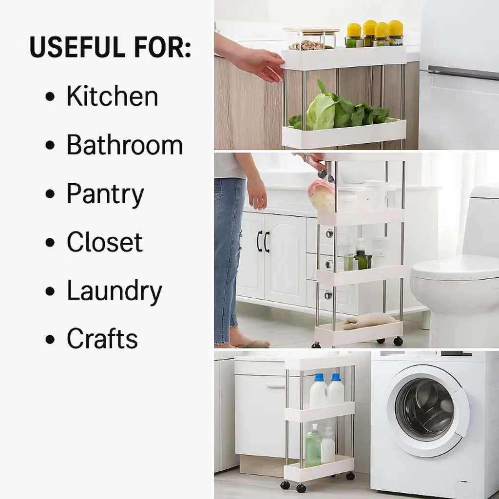 Modern Home 4 Tier Narrow Sliding Storage Organizer Rack - White Utility Cart