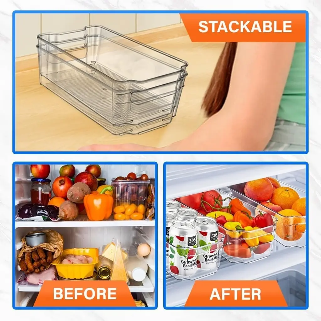 Multi-Purpose Refrigerator Bins Stackable Design Fridge Bin Organizer With Easy Grip Handles - Clear - 14 Pieces - Clear