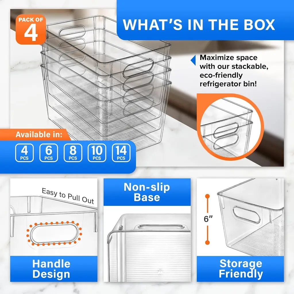 Multi-Purpose Refrigerator Bins Stackable Fridge Bin Organizer With Easy Grip Handles - Clear - 4 Pieces - Clear