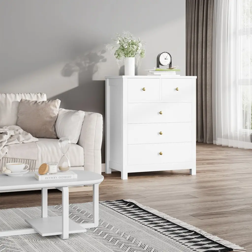 Nasitip 5 Drawer Dresser, Wood Dresser Organizer With Deep Space, Storage Cabinet For Entryway, Hallway, Home Office(white)