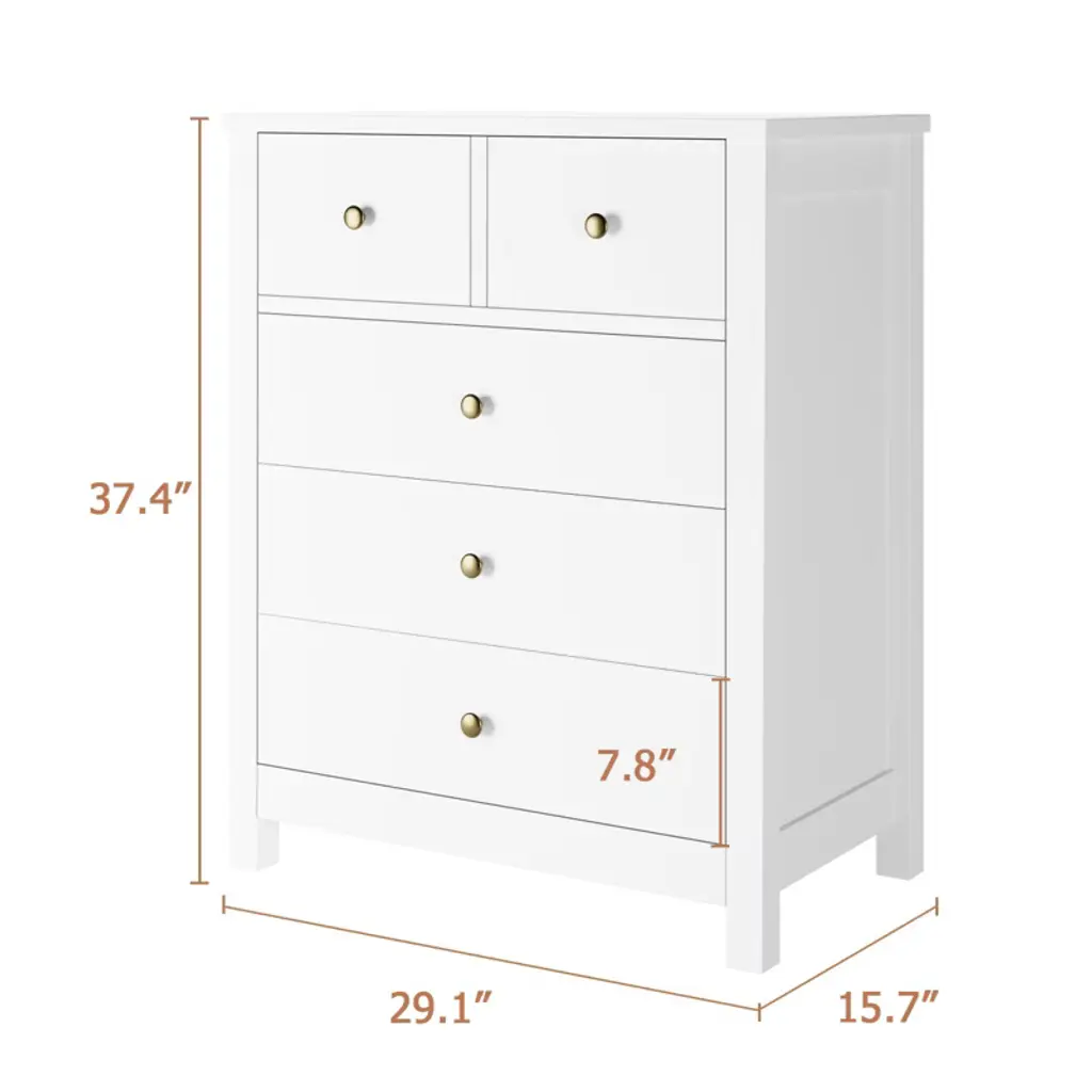 Measuring 29.1''L x 15.7''W x 37.4''H, this wood dresser features 5 drawers and a spacious top surface for displaying photos, plants, or decor, while providing ample storage space for books, clothes, and other essentials.A versatile addition to your bedroom, living room, study, nursery, closet, hallway, or entryway, this modern chest of drawers can easily serve as a closet, bookcase, TV cabinet, or workstation, seamlessly blending into various settings.