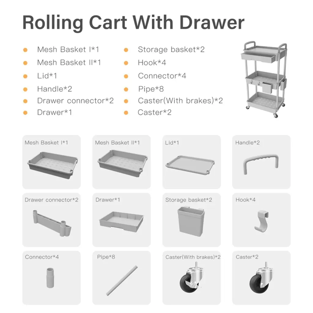 Obokata 3 Tier Rolling Utility Cart With Drawer,rebecat Utility Cart Made Of Multifunctional Storage Organizer Tool For Kitchen,bathroom,living Room