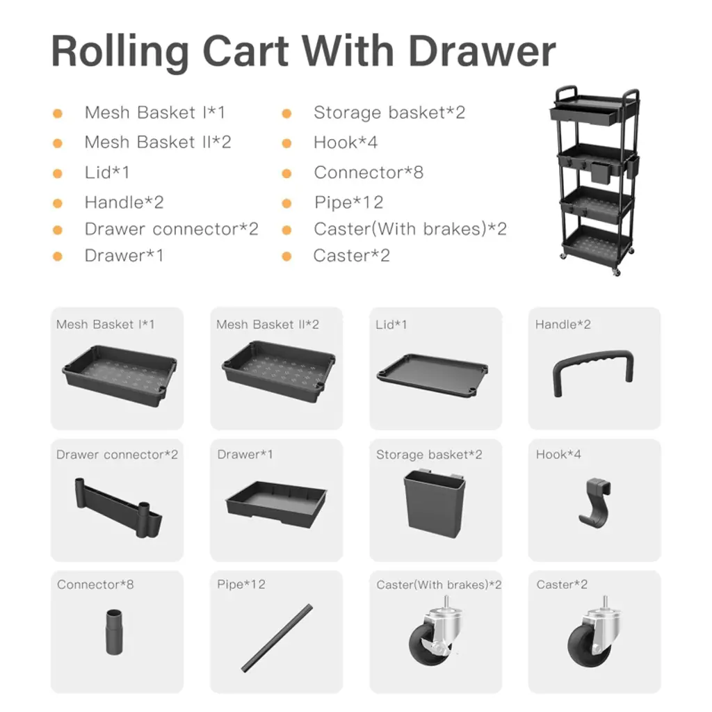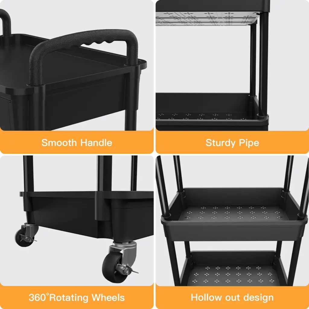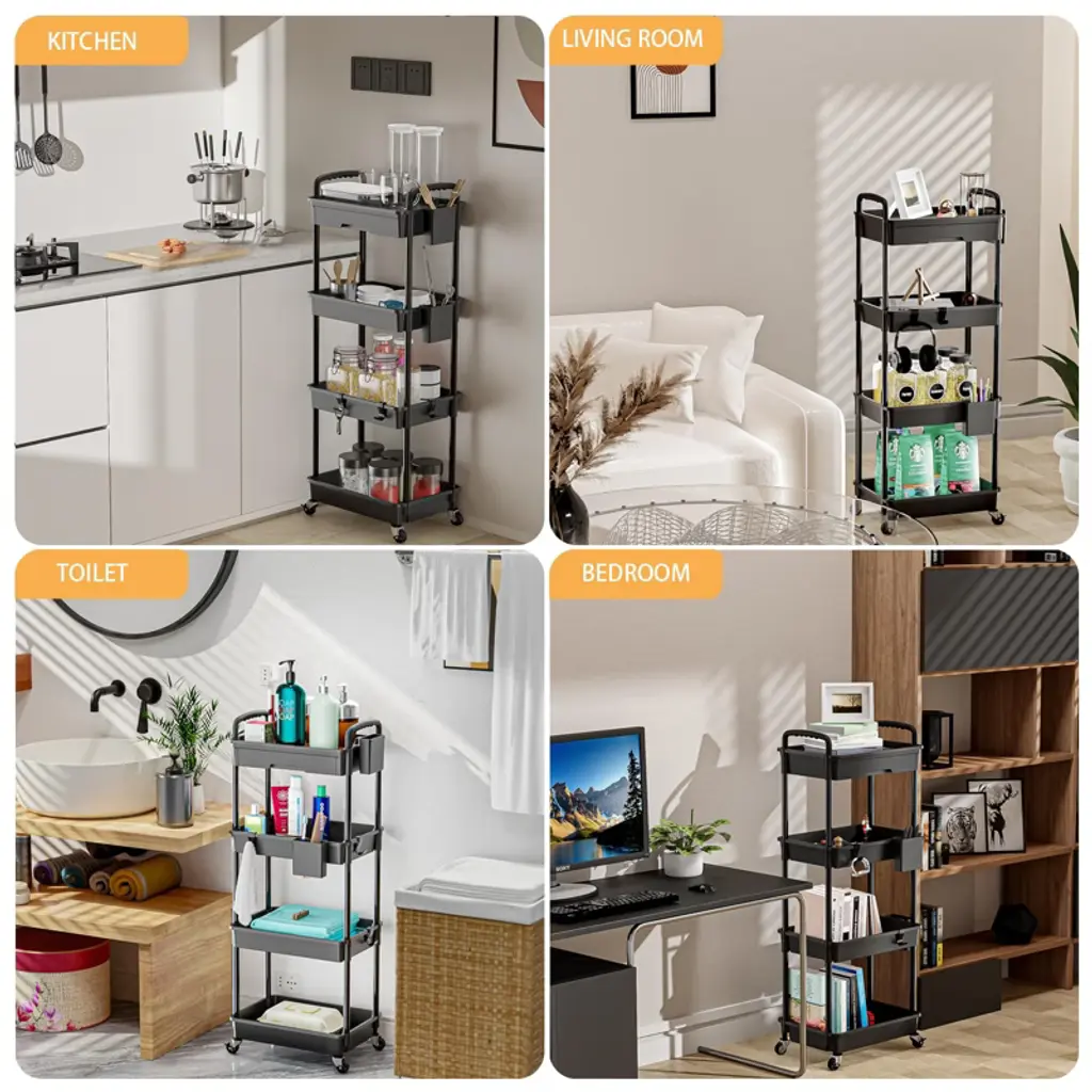 storage shelves Save space and declutter any room with this storage cart with ample shelf space to hold household items or office supplies.