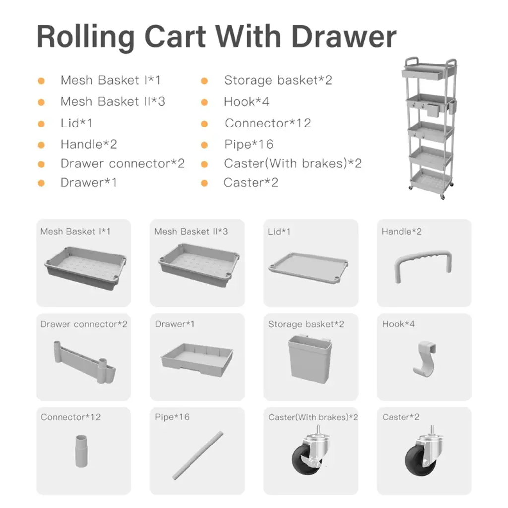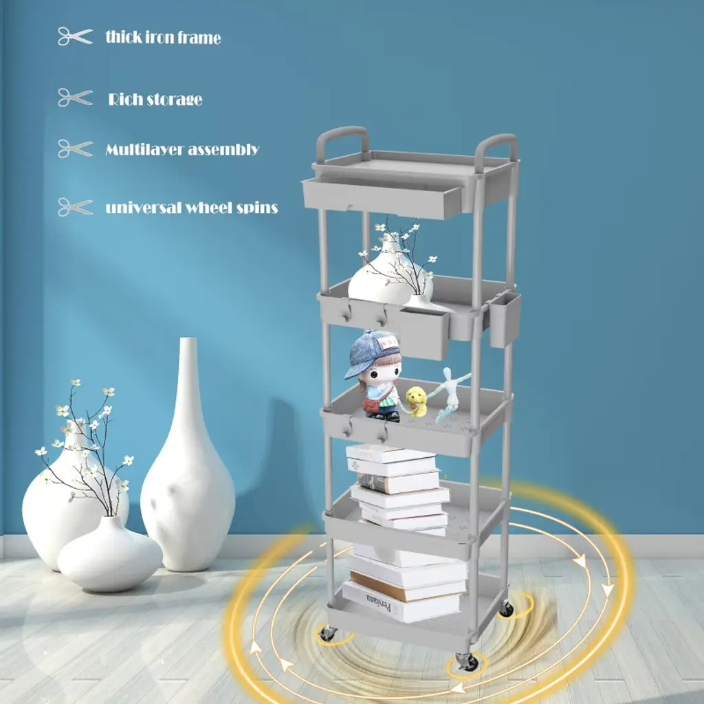 Obokata 5 Tier Rolling Utility Cart With Drawer,rebecat Utility Cart Made Of Multifunctional Storage Organizer Tool For Kitchen,bathroom,living Room