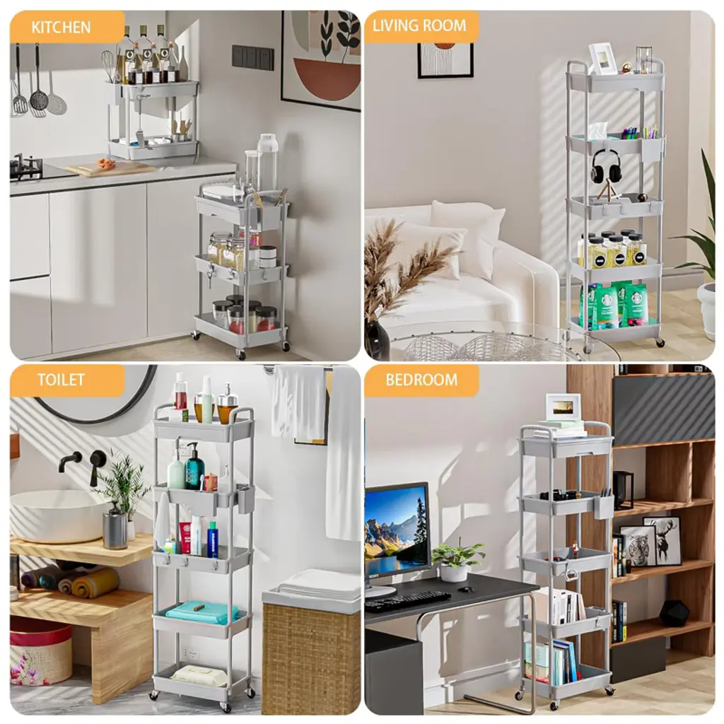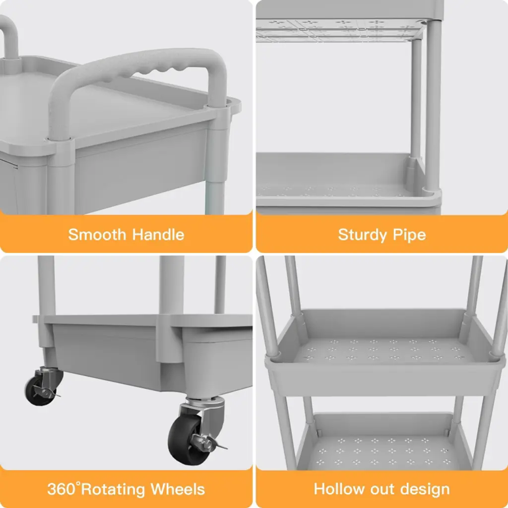 storage shelves Save space and declutter any room with this storage cart with ample shelf space to hold household items or office supplies.