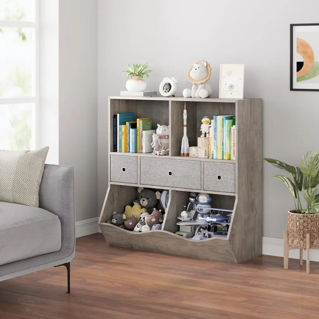 【Ample & Organized Storage】Features 3 spacious cubbies and 2 tilted storage bins, providing plenty of space to neatly organize books, toys, art supplies, and more—keeping play areas tidy and clutter-free
