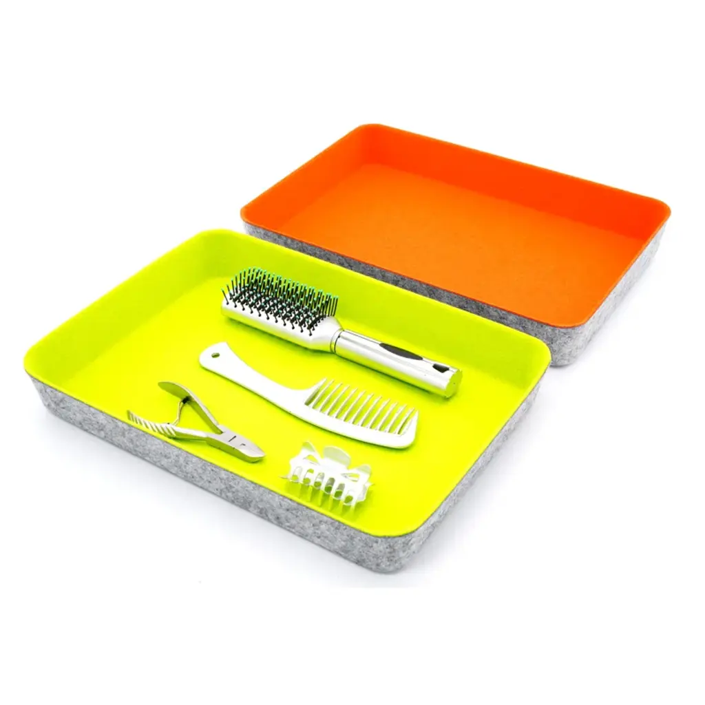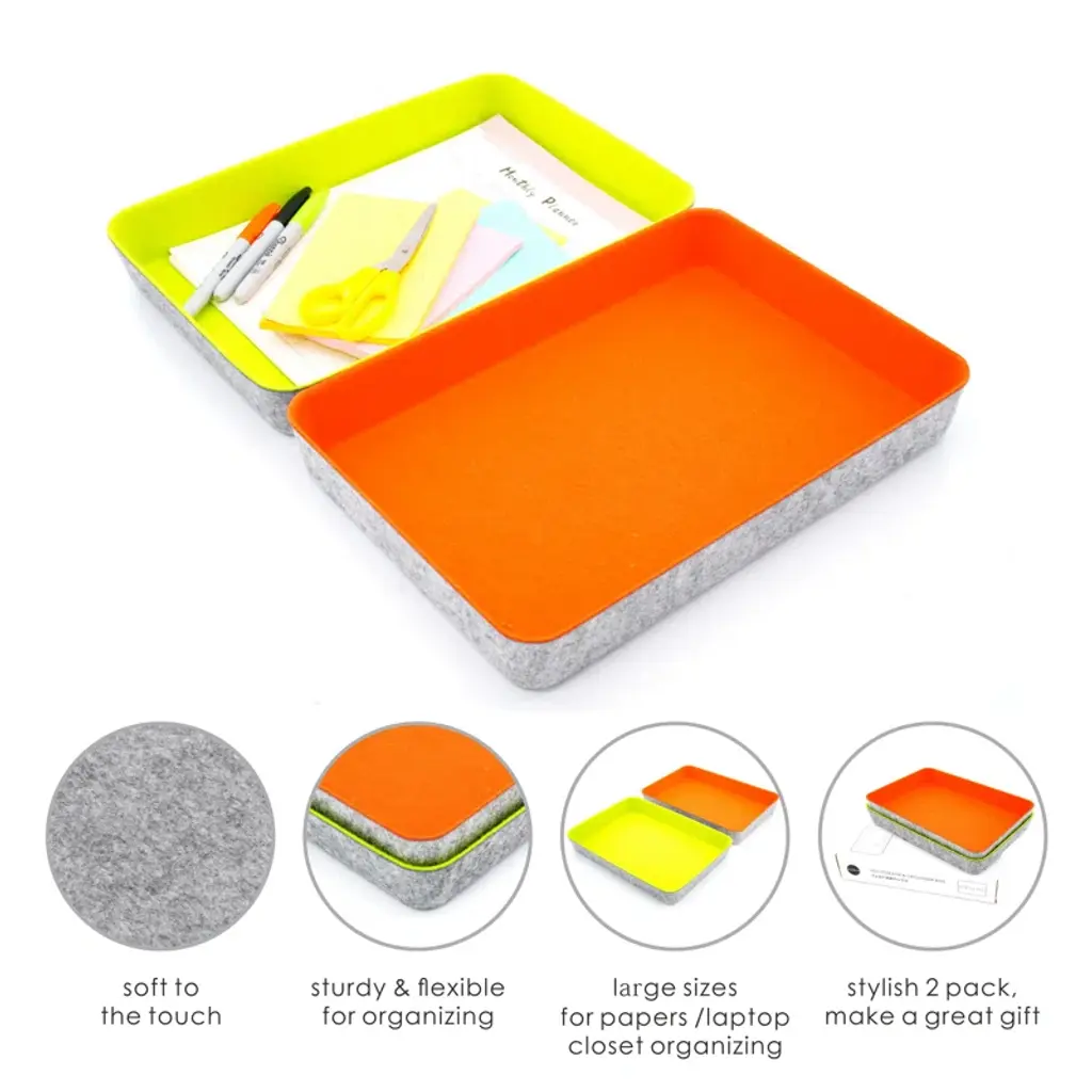 Premium high-quality felt with 2 tones colors, great size for A4 documental files paper organize, or with small accessories, pen, gifts, jewelry, etc in the bin to fit in the drawer. Organize each in a clean and stylish lifestyle. Mix and match for any drawer size and storage need. Perfect for home, office, and desk use.