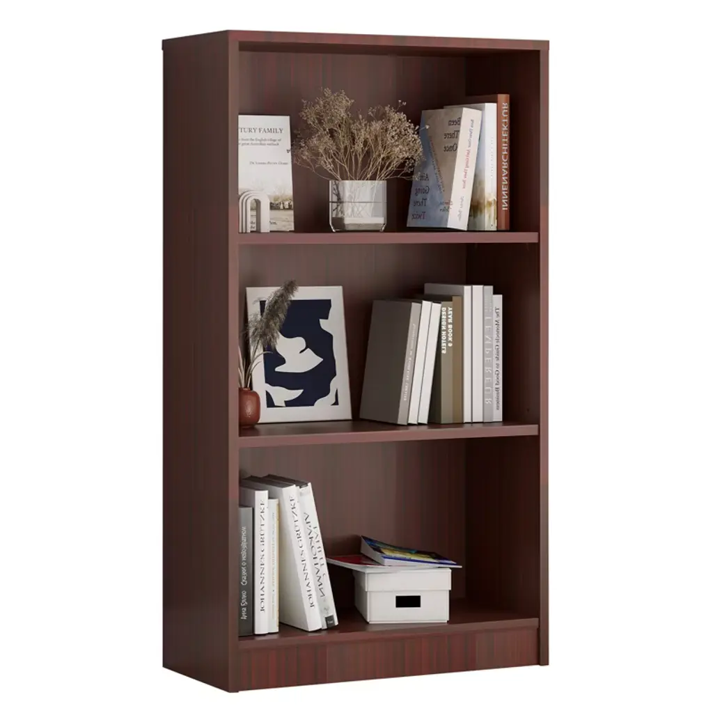 Orrd 3-shelf Wood Bookcase Freestanding | Adjustable Shelves Storage Organizer For Home Office, Mahogany