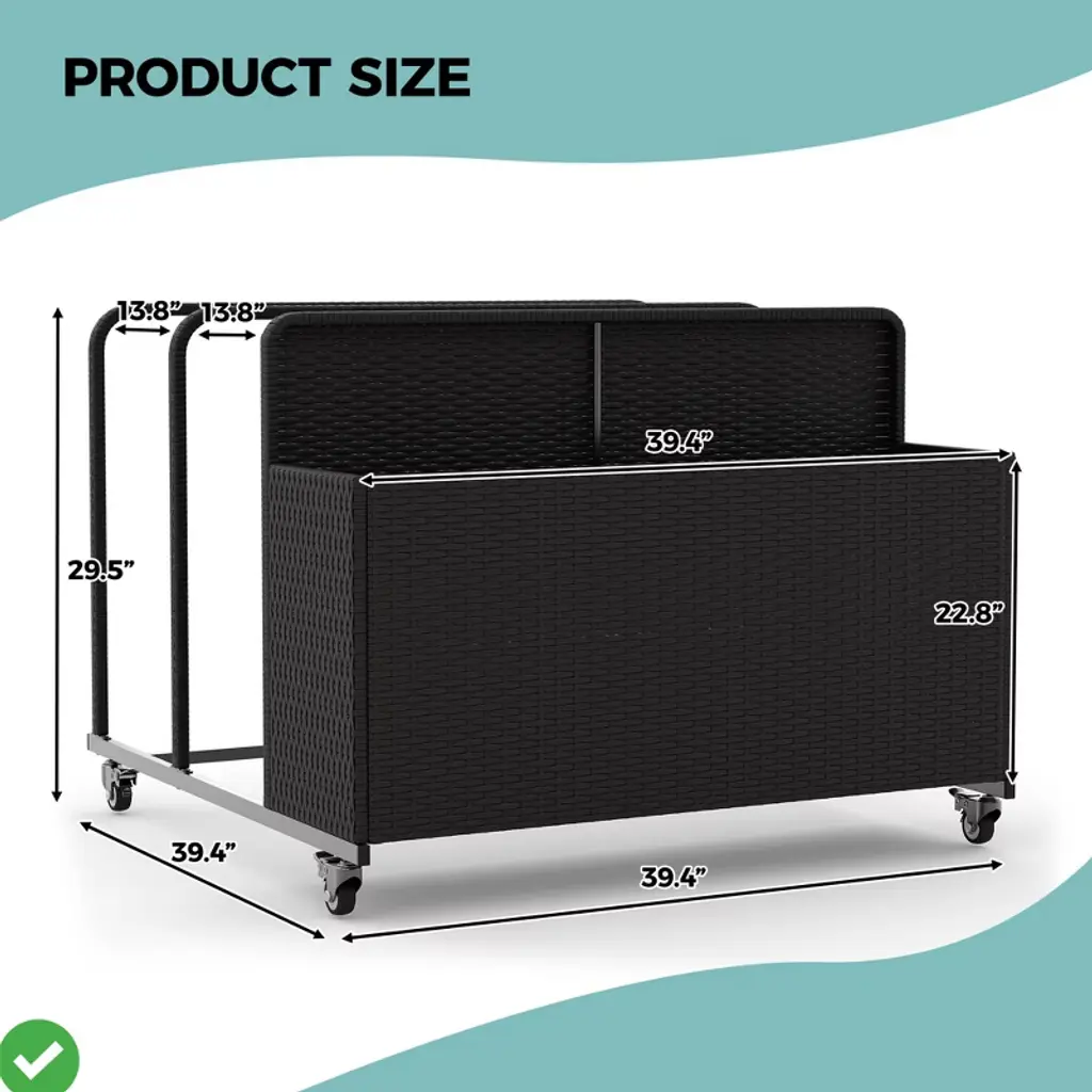 Outdoor Pool Float Storage with Rolling Wheels,Pool Storage Bin with PE Rattan, Patio Wicker Poolside Float Storage Basket for Cushions, Floaties, Noodles, Life Vests, Beach Balls, Toys.