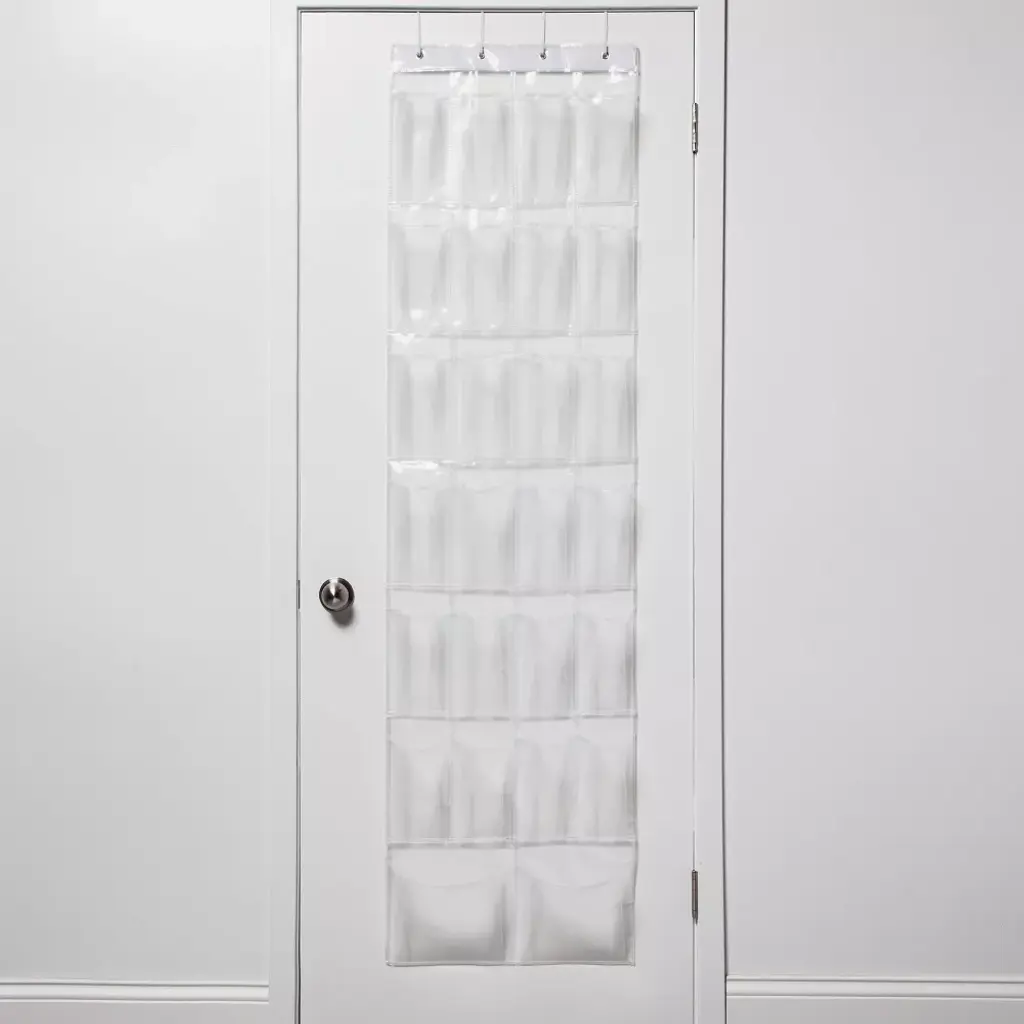 Give your footwear a stylish storage option with this Over-the-Door Shoe Organizer from Room Essentials™. This plastic shoe organizer features an easy see-through design for a simple yet sleek look. Perfect enough to hold multiple shoes, this over-the-door shoe organizer helps you save space while maintaining a neat and tidy space. Just hang it on the door of your room for convenient dressing up for the day.