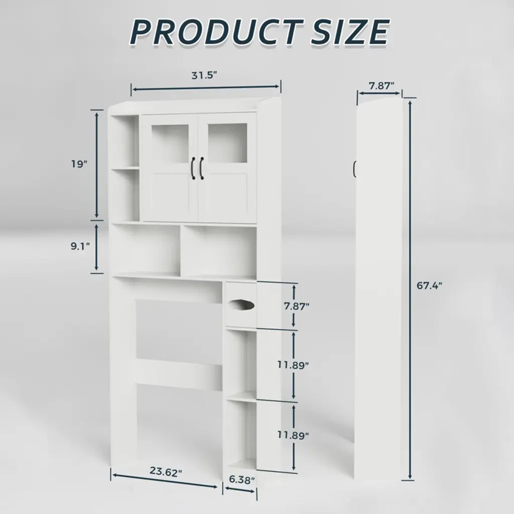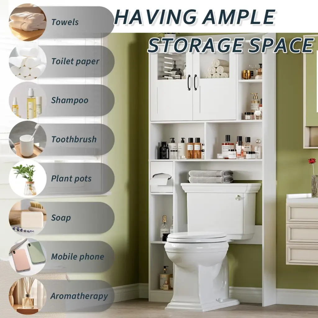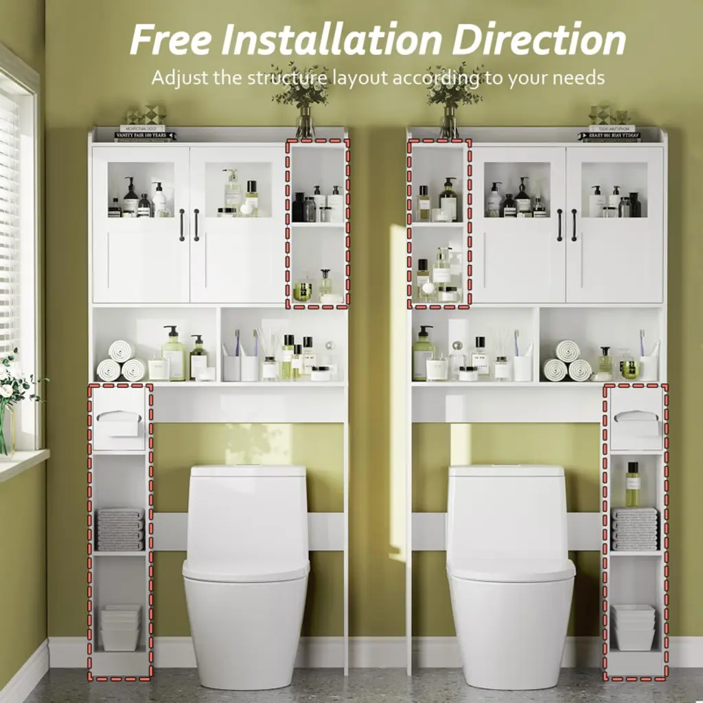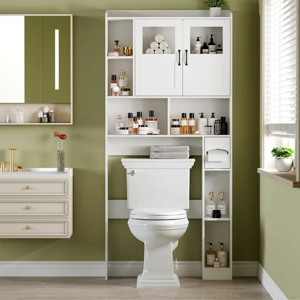 Over The Toilet Storage Cabinet With Adjustable Shelves, Modern Bathroom Organizer Unit
