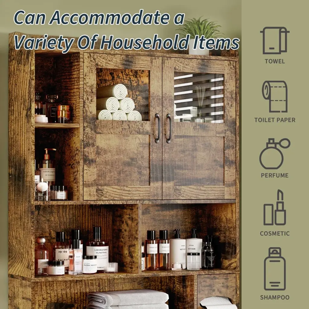 Over The Toilet Storage Cabinet With Adjustable Shelves, Modern Bathroom Organizer Unit