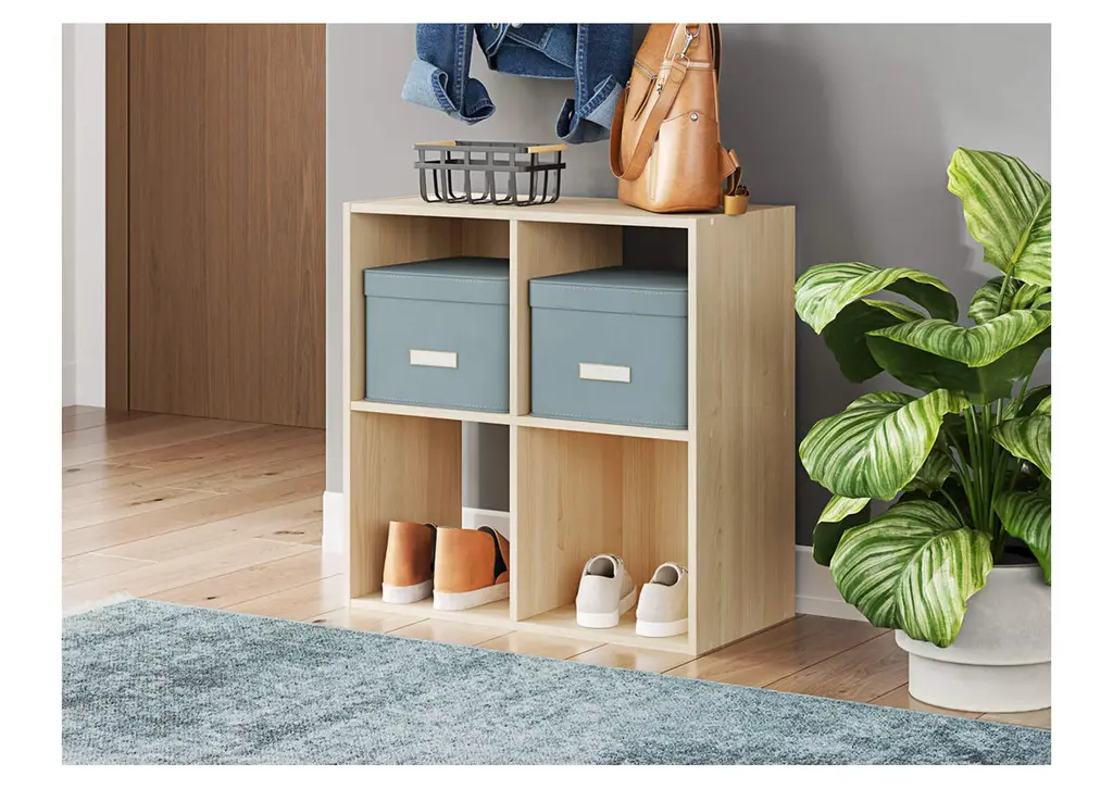 Keep clutter out from underfoot with the Piperton four-cube organizer. The natural finish over replicated ash wood grain is warm and inviting, all while keeping your toys, knickknacks and other items stored away. The perfect marriage of style and function, this organizer is an ideal addition to any busy living space. Weight 25.000 lbs. (11.25kgs.)