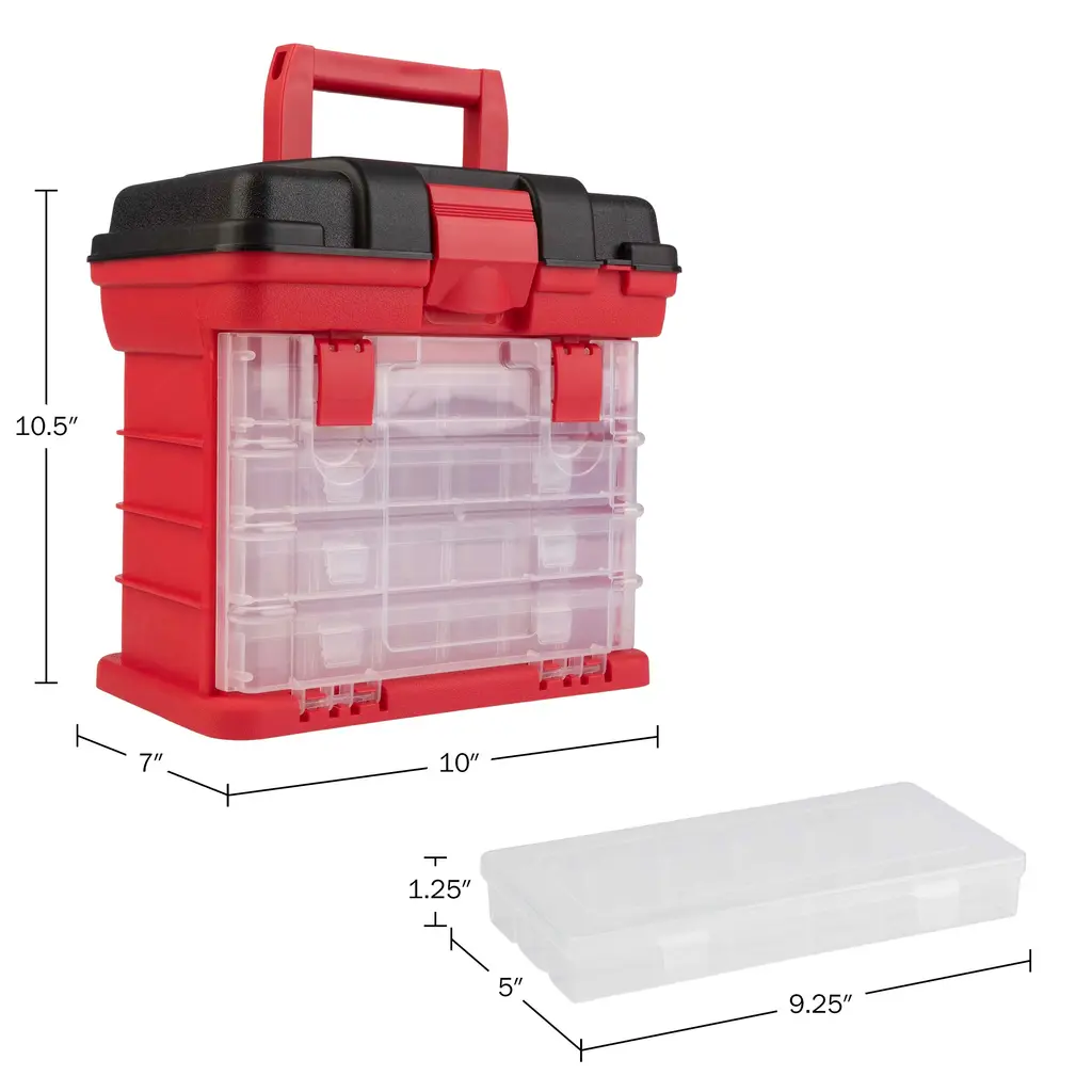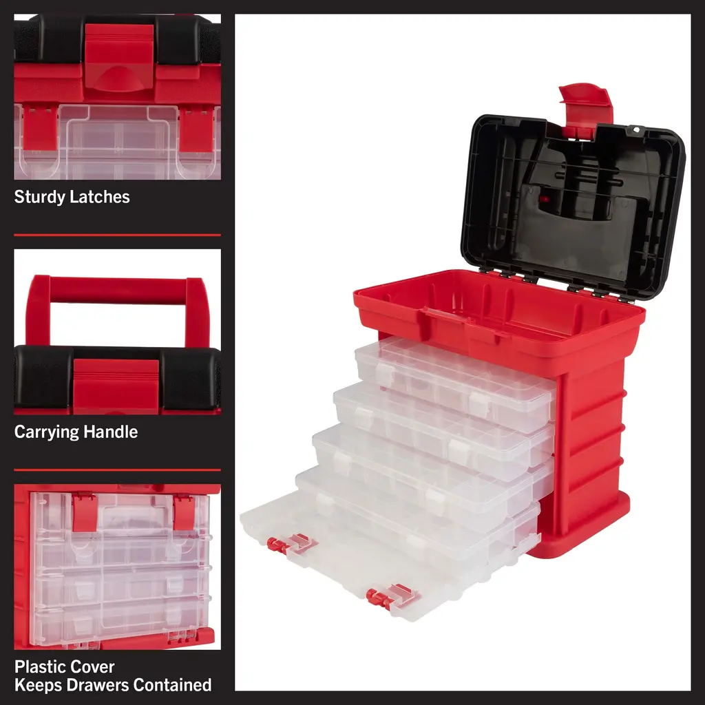 Portable Tool Box - Small Parts Organizer With Drawers And Customizable Compartments For Hardware, Or Crafts By Stalwart - Red