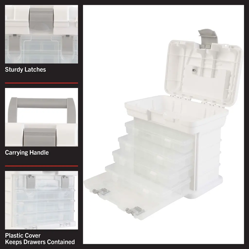 Portable Tool Box - Small Parts Organizer With Drawers And Customizable Compartments For Hardware, Or Crafts By Stalwart - White