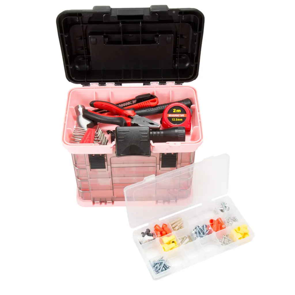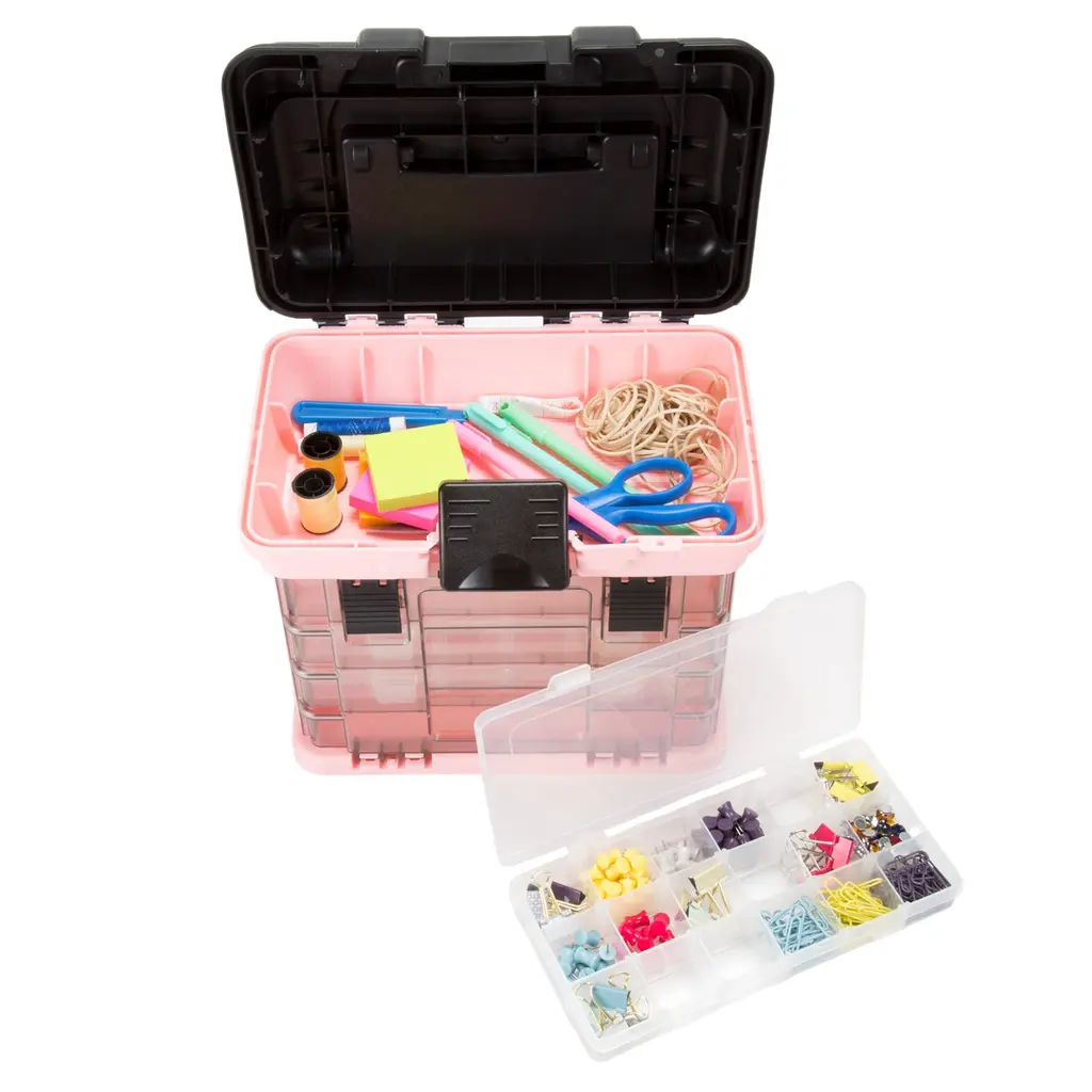 Portable Tool Box With Drawers - Durable Parts Organizer With 4 Compartments By Stalwart - Pink
