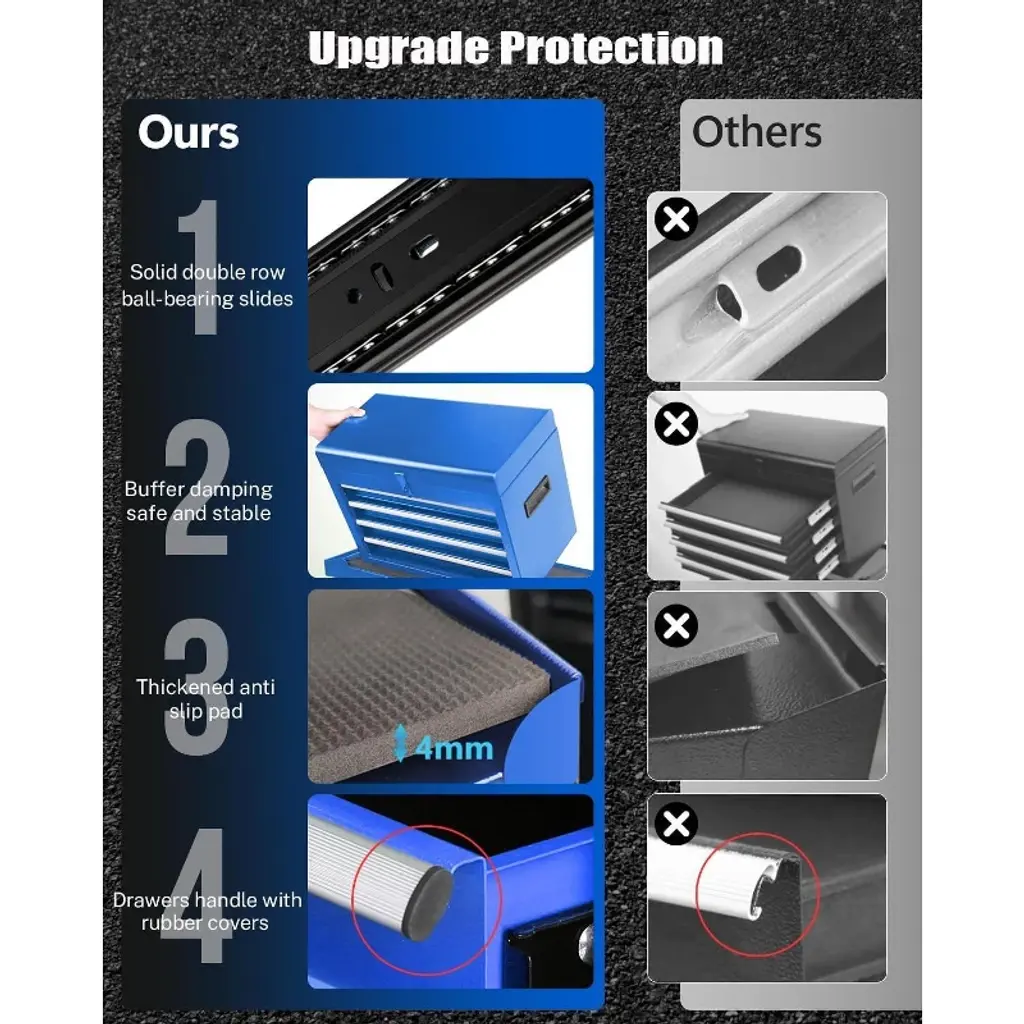 Professional 5-drawer Tool Chest On Wheels, Rolling Tool Storage Cabinet, Portable Garage Organizer For Mechanics & Home Use, Blue
