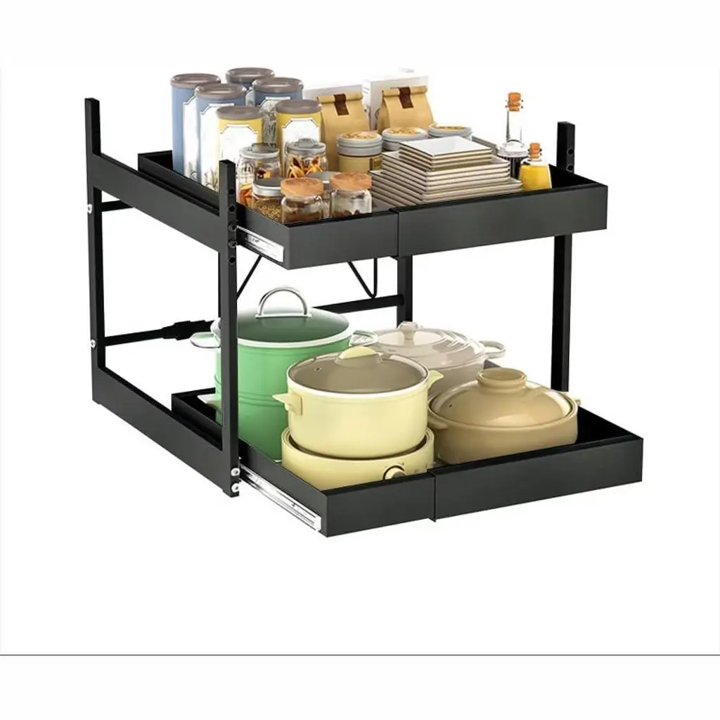 Product DescriptionMaximize your storage with our innovative pull-out organizer, designed to expand and fit various cabinet widths for optimal space efficiency in your kitchen, pantry, or bathroom. Built with durable materials, it supports heavy items and features a hassle-free adhesive installation—no drilling needed. This versatile, space-saving drawer keeps essentials neatly arranged and within easy reach, making organization simple and effective.Product InformationName: Pull Out DrawersMaterial: Carbon SteelStyle: Modern MinimalistColor: White/BlackItem Weight: 5.61 PoundsProduct Dimensions 17.72"D x 13.78"W x 3.94"HUnit Count: 1.0 CountNumber of Items: 1Special Features ExpandableSpecific Uses For Product: UtensilsIncluded Components: 1 x Cabinet OrganizerBatteries Required? NoPacking List:1x Cabinet Organizer
