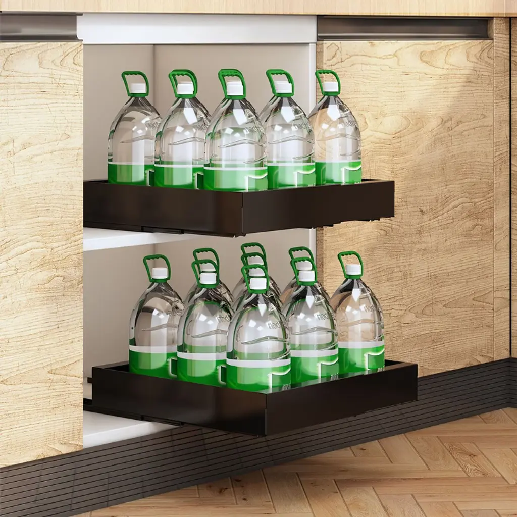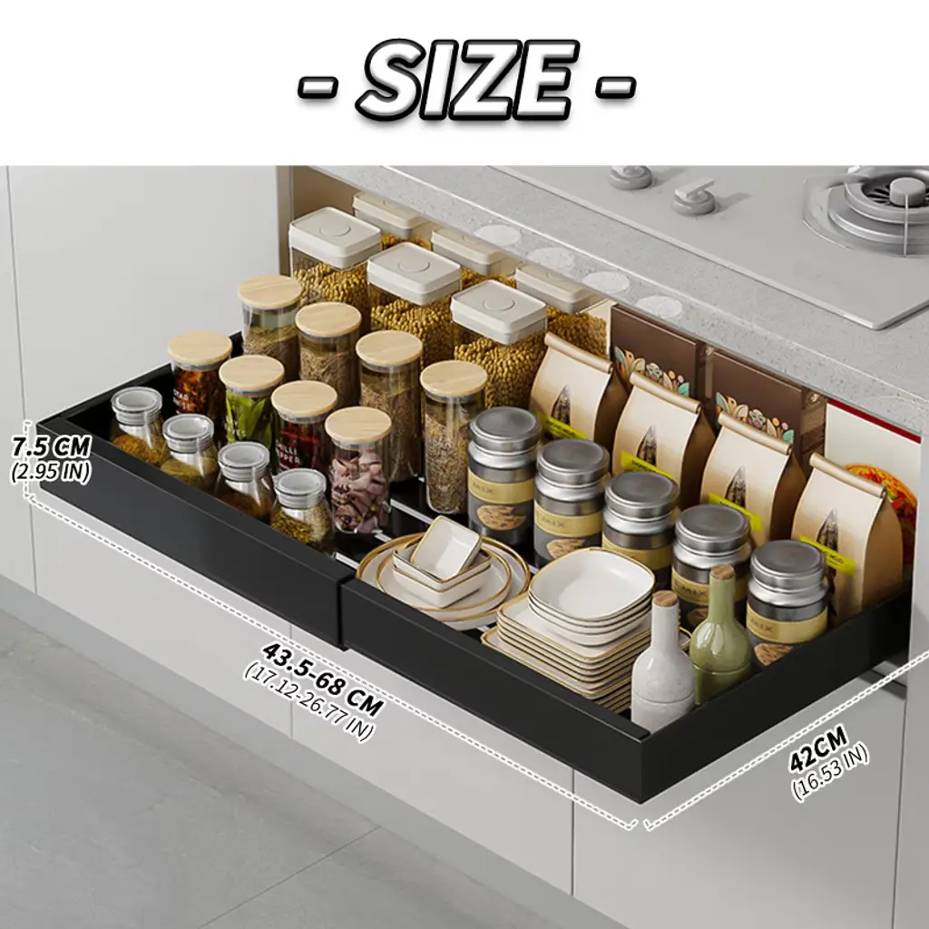 Product DescriptionMaximize your storage with our innovative pull-out organizer, designed to expand and fit various cabinet widths for optimal space efficiency in your kitchen, pantry, or bathroom. Built with durable materials, it supports heavy items and features a hassle-free adhesive installation—no drilling needed. This versatile, space-saving drawer keeps essentials neatly arranged and within easy reach, making organization simple and effective.Product InformationName: Pull Out DrawersMaterial: Carbon SteelStyle: Modern MinimalistColor: White/BlackItem Weight: 5.61 PoundsProduct Dimensions 17.72"D x 13.78"W x 3.94"HUnit Count: 1.0 CountNumber of Items: 1Special Features ExpandableSpecific Uses For Product: UtensilsIncluded Components: 1 x Cabinet OrganizerBatteries Required? NoPacking List:1x Cabinet Organizer