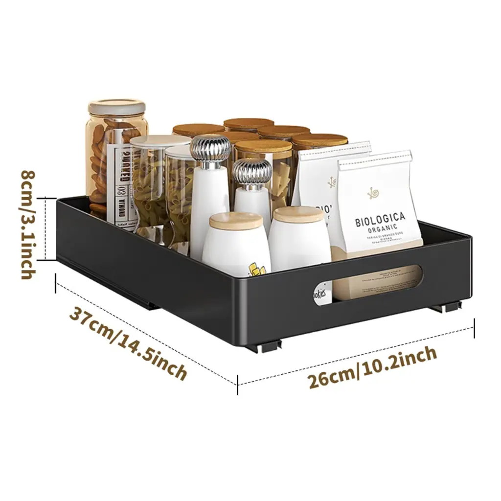 Our cabinet slide out shelves are crafted from high-grade carbon steel for durability and rust resistance. The heavy-duty design maximize vertical storage space with a convenient slide-out feature, organize heavy duty items easily, ideal for optimizing limited storage. Our kitchen cabinet organizers are equipped with smooth metal damping guide rails with built-in steel balls, the drawers slide smoothly without annoying noise, you can easily pull out the drawers to store and access items, convenient and durable.
