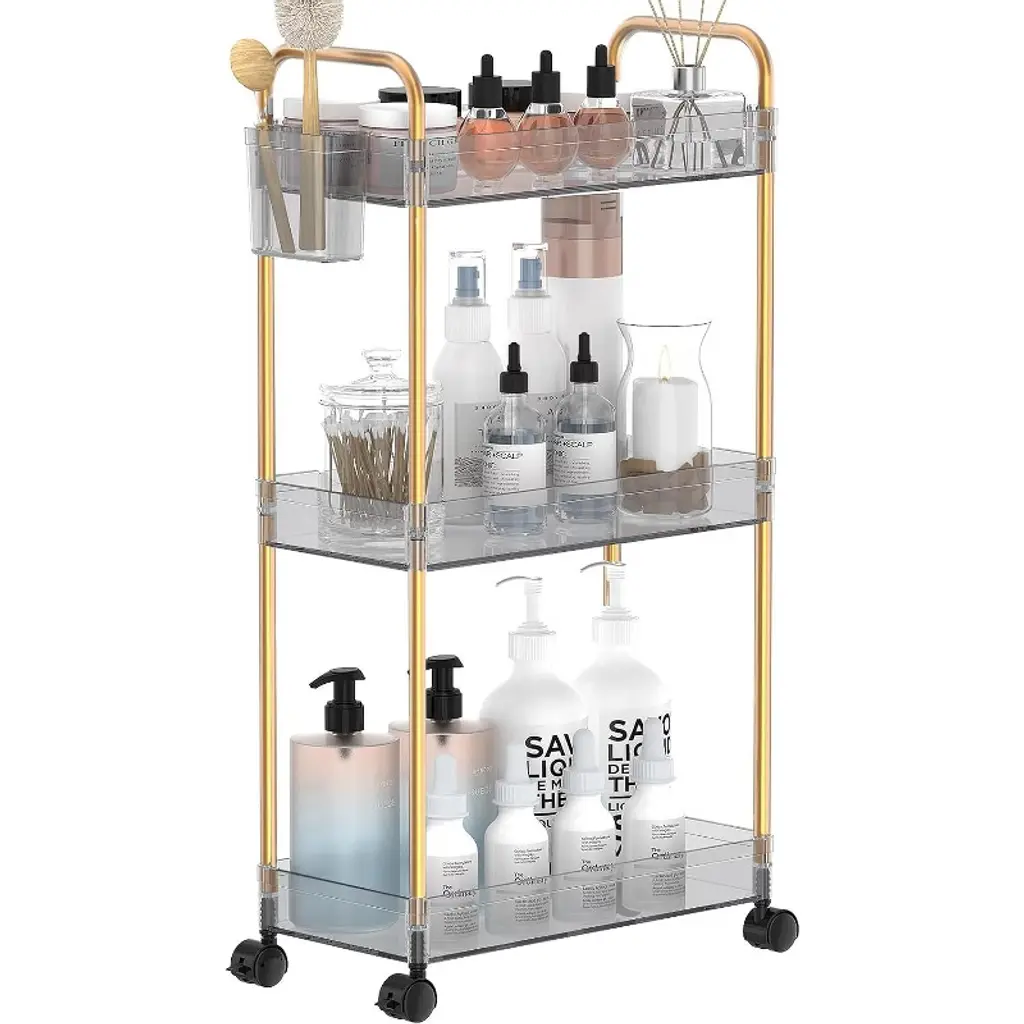 Qingmoon Makeup Organizer Cart With 4 Drawers, Floor Skincare Organizers With Wheels, Cosmetic Storage Rack For Perfume, Nail Polish, Brushes