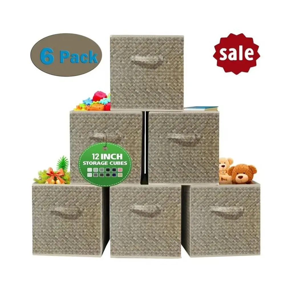 Racxily 6 Pack Foldable Fabric Storage Cubes With Handles ̈C 12 Inch Large Cube Organizer Bins, Home Organization