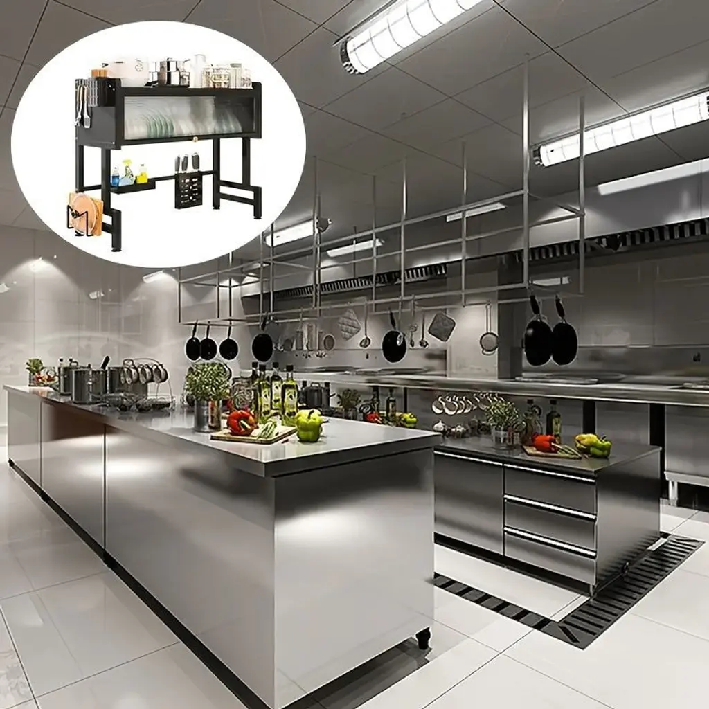 Racxily 83cm Countertop Dish Storage Drain Rack With Cabinet Door, Kitchen Sink Dish Rack, Kitchen Drainer Tableware Organizer Set, Black
