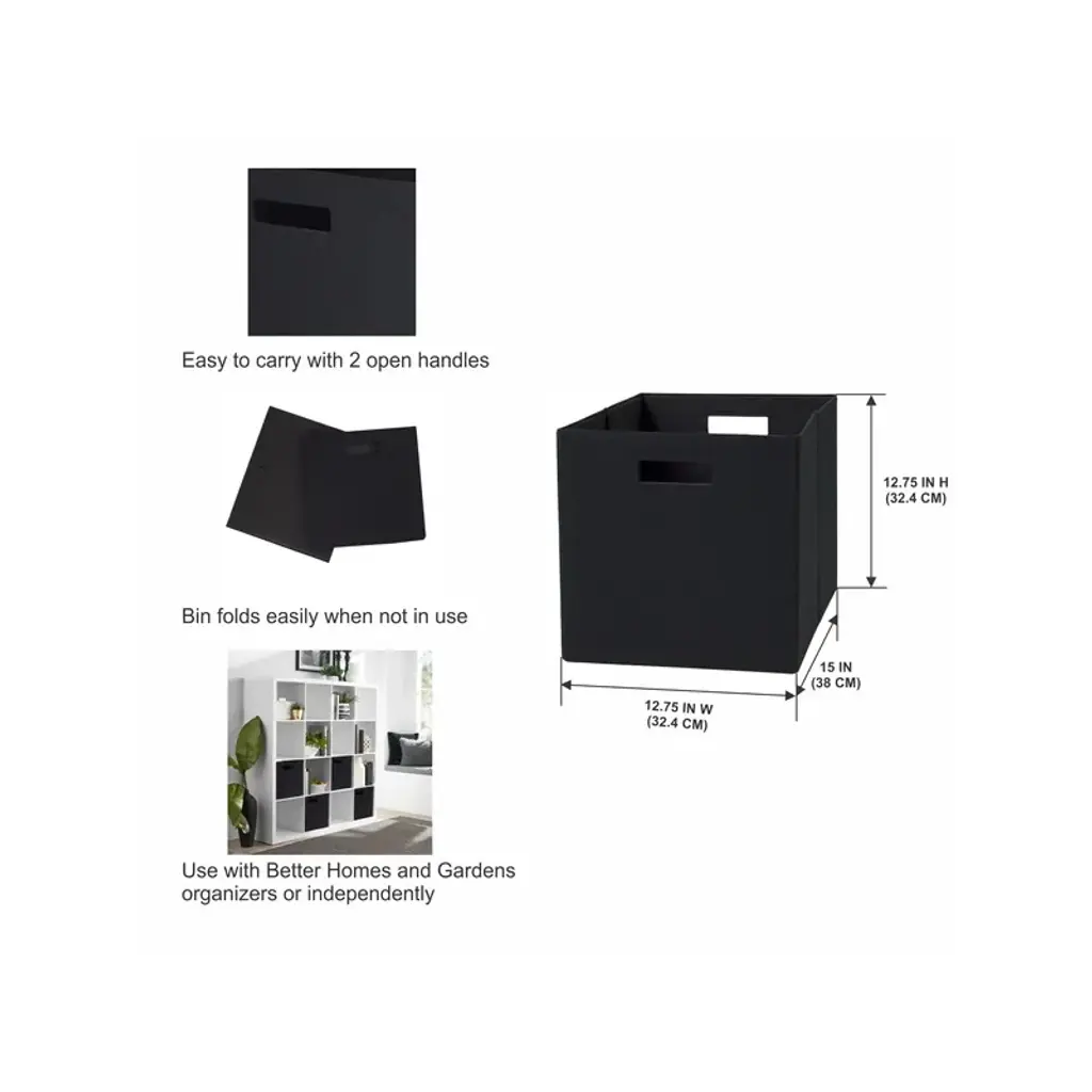 These Better Homes and Gardens Cube Storage Bins are a versatile and indispensable item for your home, office or small business. You can use them to store documents, files, toys, electronics, supplies, small equipment, kids to adult clothes and much more. This storage bin measures 12.75" x 12.75" x 15" with two handles to make it easy to carry and transport them. With a variety of colors to choose from, you'll be able to perfectly match your home decor when you get organized with our Fabric Cube Storage Bins.