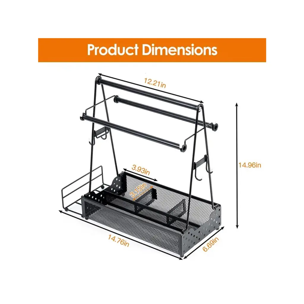 Racxily Utensil Caddy Metal Grill Caddy With Paper Towel Holders Utensil Holder Grilling Tools Storage Organizer