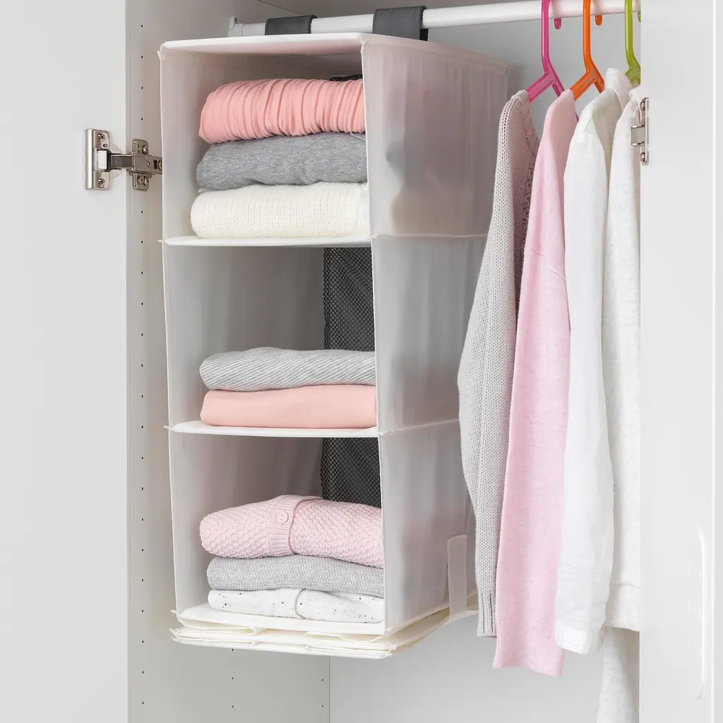 RASSLA Organizer with 5 compartments - white 9 ¾x15 ¾x38 ½ ". It’s perfect for everything from small things in a child’s room to gloves and soft toys. Suitable for use in the bathroom, the hallway, the wardrobe, or on a freestanding clothes rack. Can be folded to save space when not in use.