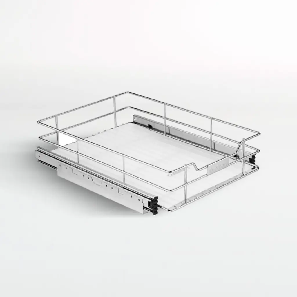 No more bending down or rifling through stacks of pots and pans in your cabinets, because with the Rev-A-Shelf Kitchen Pull Out Cabinet Organizer with Shelves, storing your spices, dry ingredients, oils, and more has never been so simple. This under cabinet organizer features multiple adjustable shelves for a ton of storage options. When you want to access your ingredients or kitchen tools, simply slide the organizer out and back in. The full-extension BLUMOTION slides feature a soft-close and can support up to 110 pounds. Door mounting is a breeze with Rev-A-Shelf's patented door mounting brackets that provide up to 5 inches of flexibility for trouble-free installation on any door style. Double-check your cabinet's opening to allow the best fit. Measure side to side, front to back, and top to bottom. Double-check to make sure your product is within measurements and don't forget to take into account any obstructions.