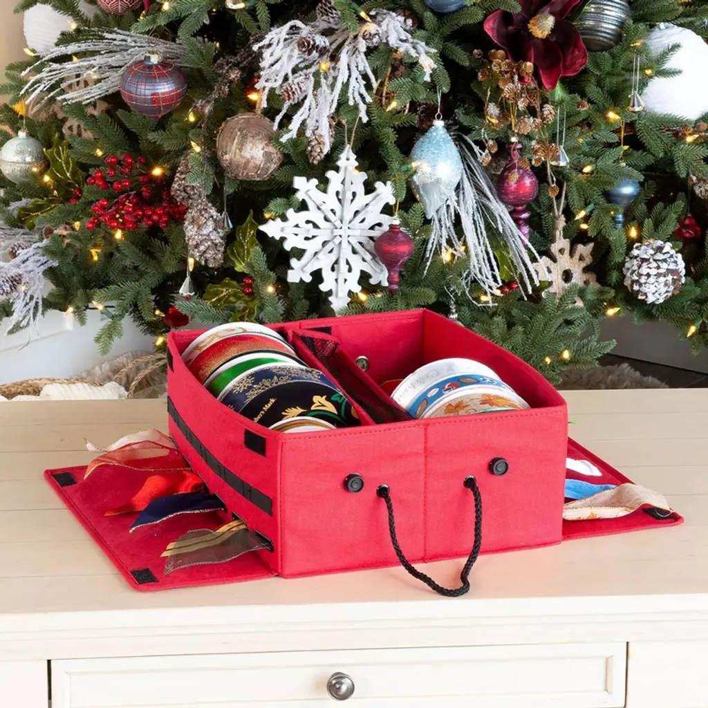 Ribbon Storage Box - Tree Keeper: Portable Craft Organizer With Dividers & Handles, Polyester, Spot Clean, 6.5" H X 13.75" W
