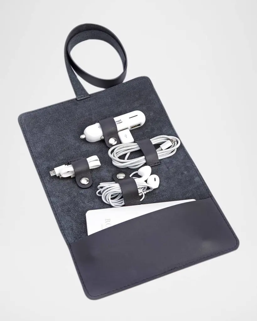 Royce New York Monogrammed Leather Tech Cord Accessory Organizer | Horchow