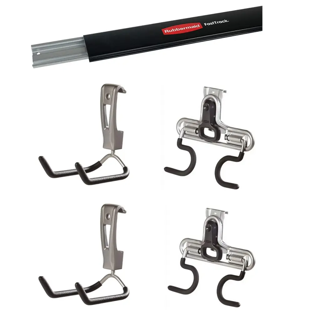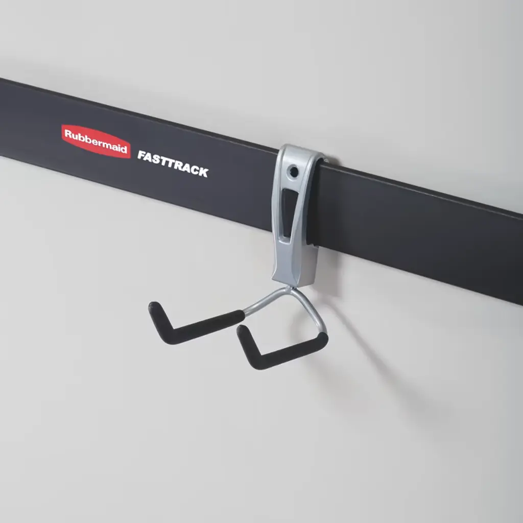 Make storage solutions easy with Rubbermaid Fast Track Rail, Garage Storage Cooler Hook, and Wall S Hook 2 Handle Storage Organizer Rack. Mount hooks directly on your FastTrack Storage Rail. This 48-inch storage rail mounts horizontally to your wall and supports 1,750 pounds. Heavy-duty steel construction holds a variety of items. Organize tools, equipment, and supplies with the Rubbermaid Storage Hook. The soft grips easily clasp, plus protect your storage hook and items. Shaped to hold coolers, ropes, folding chairs, and more. This utility hook holds 25 pounds. Get rid of clutter and organize it with the Rubbermaid FastTrack Wall S Hook 2 Handle Storage Organizer Rack. Powder coated finish adds strength for maximum durability that resists rust, chipping, and cracking. The garage organizers safely holds 50 pounds. Expand your organization solutions with the Rubbermaid Fast Track Rail, Garage Storage Cooler Hook, and Wall S Hook 2 Handle Storage Rack.