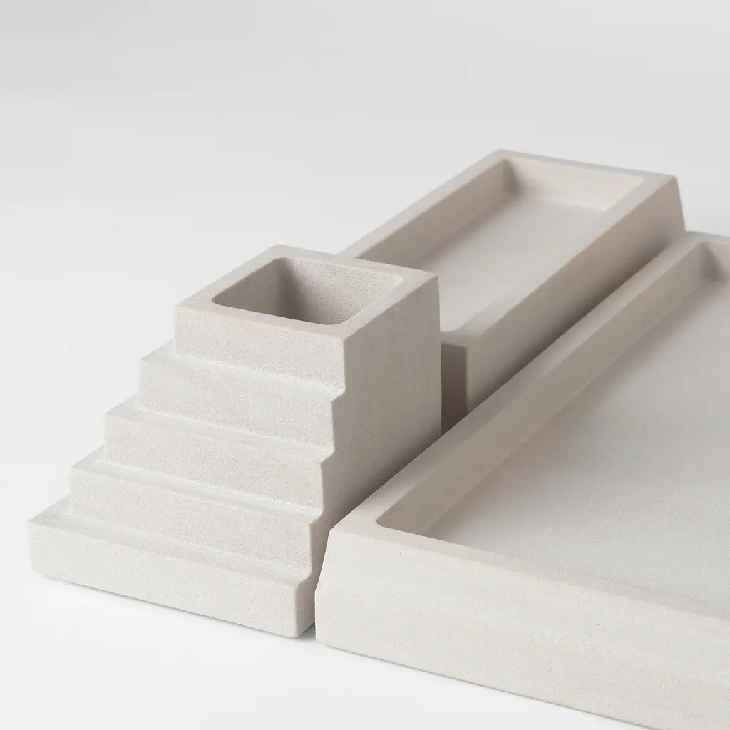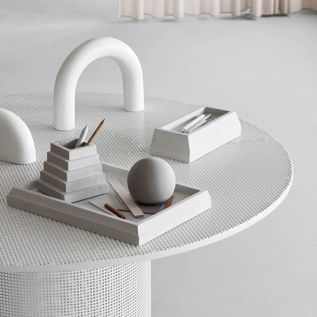 This Large Sandstone Desk Organizer is a functional piece for office organization. Constructed from light grey sandstone, it has a large size suitable for A4 papers, pens, and other desk items. The pyramid shape and matte finish align with a variety of office decor styles. The design is simple and focuses on utility, making it a practical addition to any workspace.