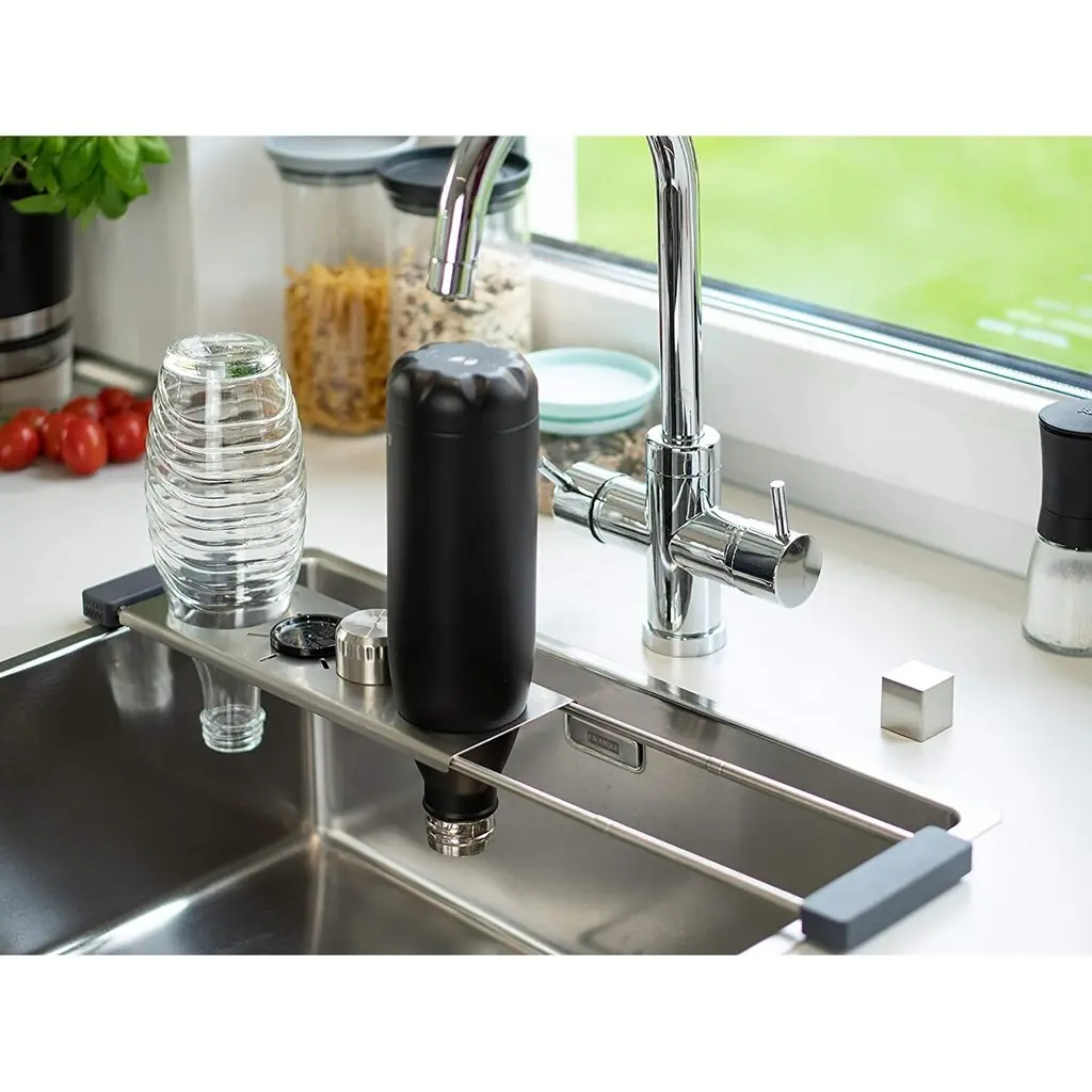 Sanni Shoo drip.it Stainless Steel Multifunctional Kitchen Sink Caddy, Drainer & Organizer - NewSanni Shoo drip.it Multifunctional Space Saving Sink Caddy No more wet surfaces - now bottles can drain over the sink! But bottles are not the only thing that the practical kitchen tool can dry hygienically. Sponges, rags, and brushes can also be dried excellently on it. And should you ever have no base for a hot pot or pan: Due to the high-quality materials, this also works without any problems.FEATURES:MATERIAL:WHAT'S IN THE BOX:PACKAGING: Retail Packaging