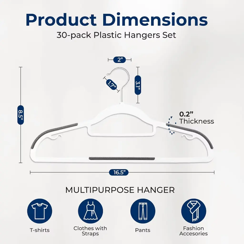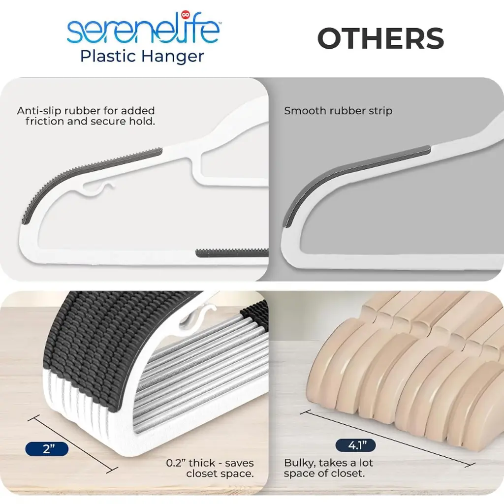 Serenelife Slhrbwh30 Non-slip Plastic Clothes Hanger - Durable And Space-saving Closet Organizers (White) - 30 Pack