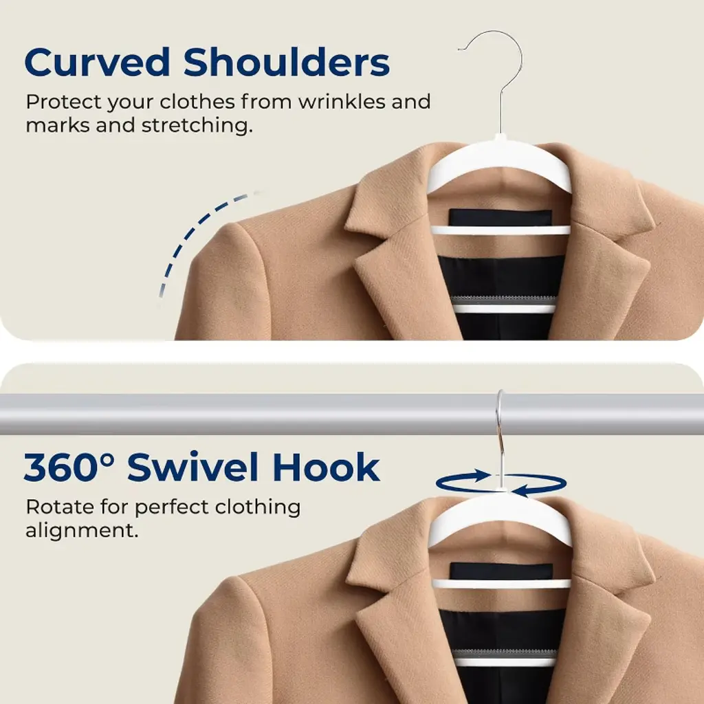 The SereneLife SLHRBWH30 Non-Slip Plastic Clothes Hangers are perfect for keeping your closet organized and your clothes neatly hung. This set includes 30 white, sleek hangers made from high-quality ABS plastic with chrome-plated metal hooks that swivel 360°. With their anti-slip shoulder grooves, these hangers ensure your clothes stay securely in place, making them perfect for coats, shirts, dresses, pants, and more. Their ultra-thin, space-saving design is ideal for maximizing closet space.