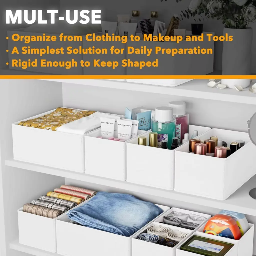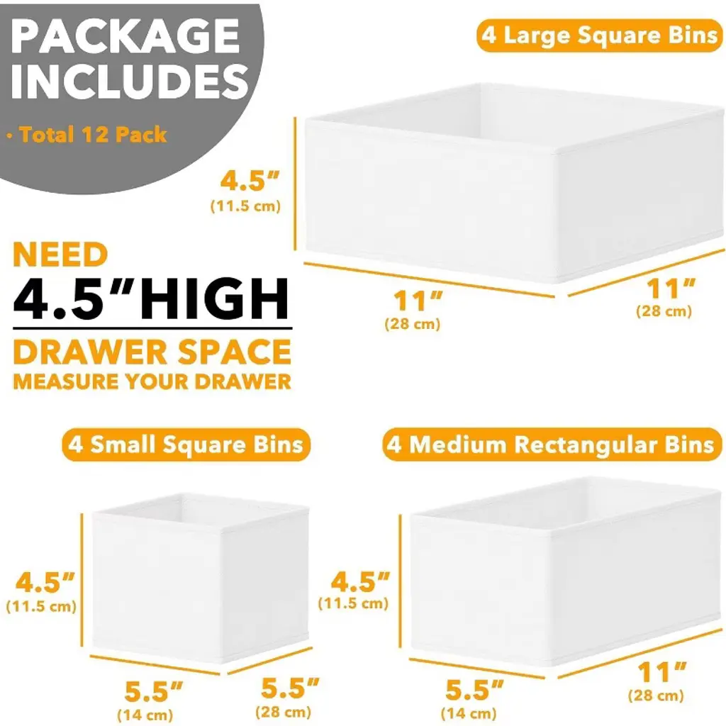 Set Of 12 Collapsible Drawer Organizer Bins For Clothes, Closet Organizers And Storage Dividers For Clothing (White)