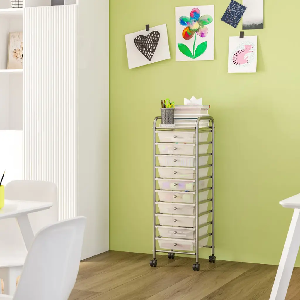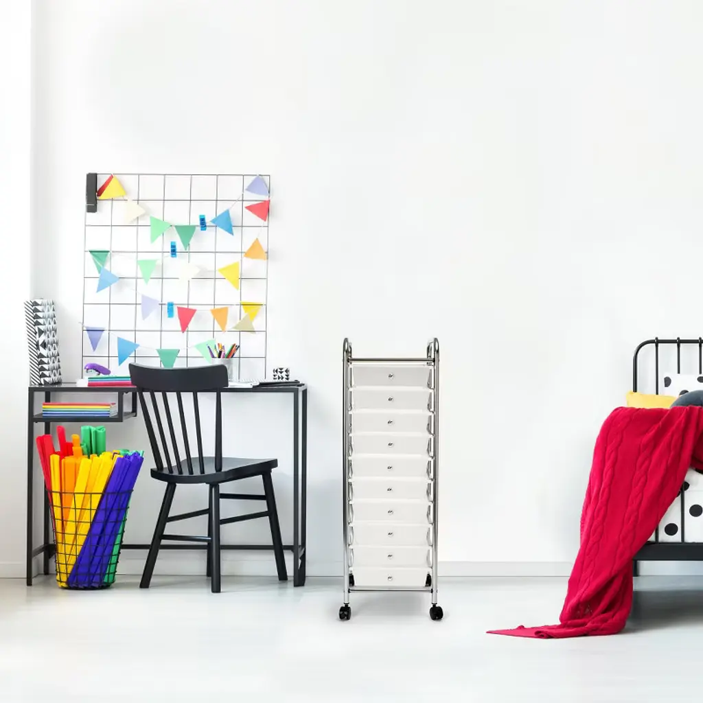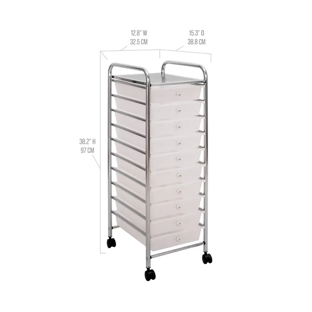 Seville Classics 10-drawer Organizer Rolling Storage Cart With Wheels, Frosted White