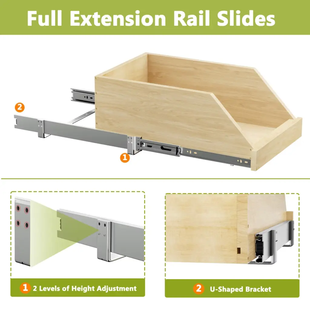 Sevobal Utility Storage Drawers Wood Pull Out Cabinet Organizer Full Extension Slide For Kitchen Pantry, Wood, 21"*16.5"*8"