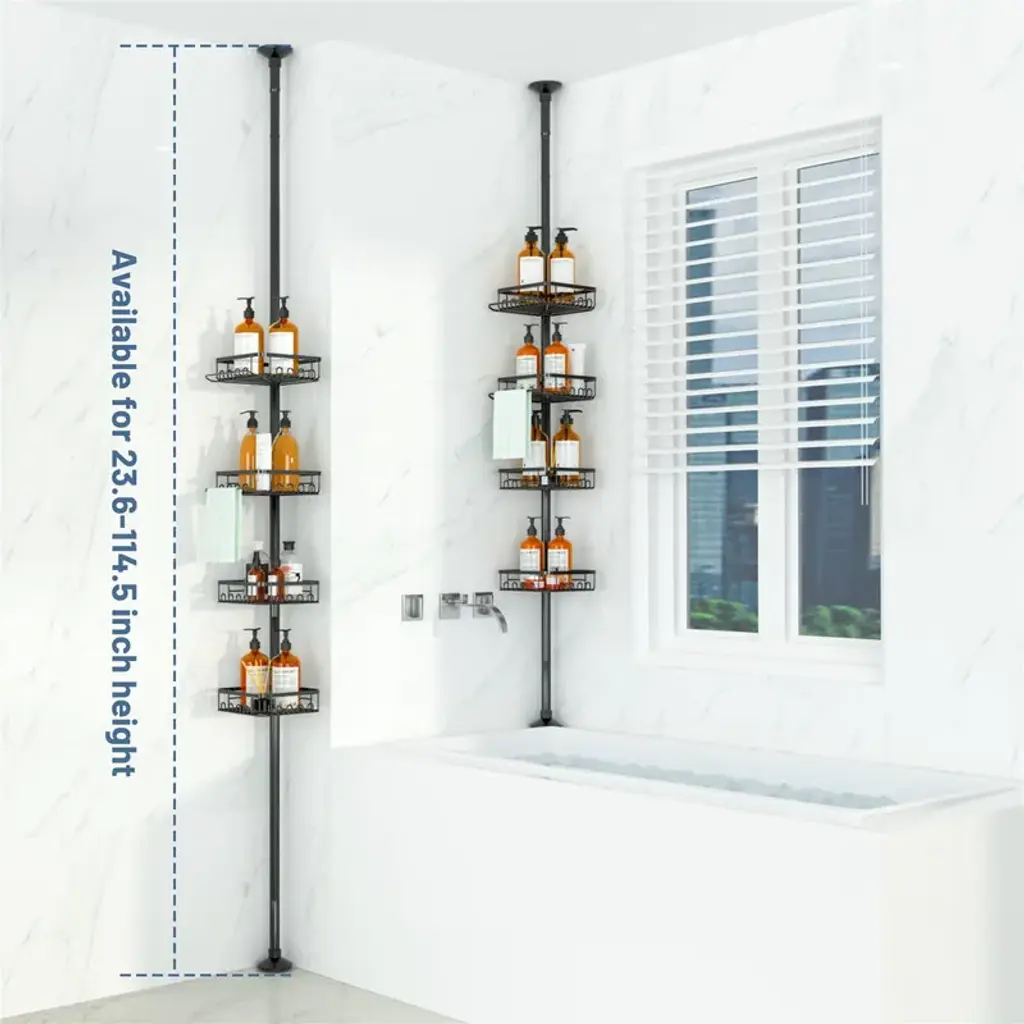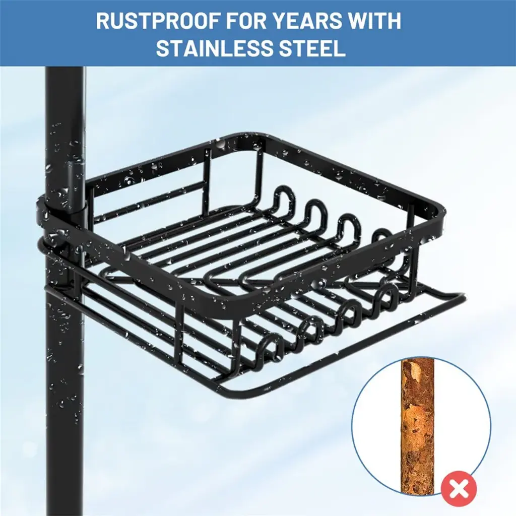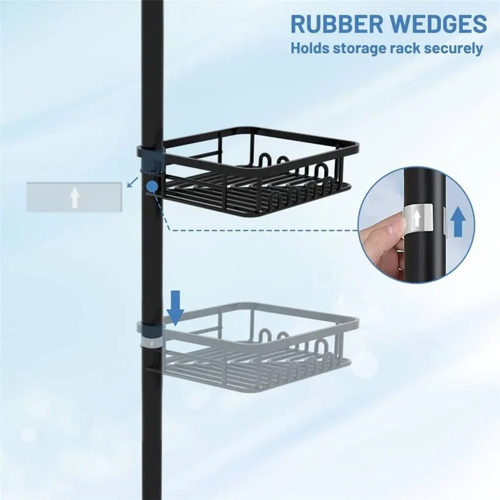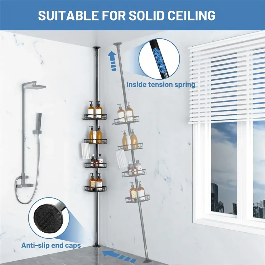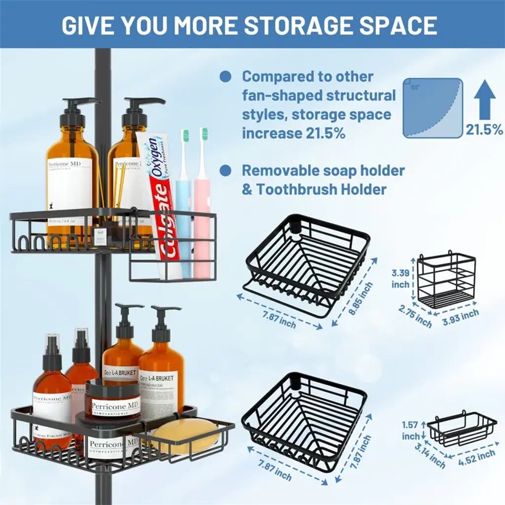 RUSTPROOF STAINLESS - shower caddy corner is fully made of stainless steel (NON MAGNETIC) for all poles and baskets, which made it durable and withstand rustproof for years. STABLE & SECURE - This shower organizer used larger pole than others and it is more solid than others, very strong and sturdy once located in place. 4+2 SPACE DESIGN GIVES YOU MORE - We offer 4 large shelf organizers (2 of which have built-in towel bars), as well as 2 detachable shelf organizers (including 1 toothbrush holder and 1 soap holder). In addition, the four large shelf organizers all have built-in hooks and storage space for shavers, meet all your placement needs. Compared to traditional fan-shaped design shelves, the square storage space has increased by at least 20%. And the design of the wire basket allows items to dry faster. HEIGHT ADJUSTABLE DESIGN - This tension shelf fit most showers, not for drop or slope ceiling. This package is equipped with 8 detachable rods, which can be flexibly increased or decreased according to needs 【The installation manual for a small portion of the inventory is an old version. To make it easier for you to install, please download the latest installation manual from the Product guides and documents module on the page】. ASSEMBLY & 100% SATISFACTION - Our shower caddy comes with labeled pieces for you to distinguish parts and It takes you around 20 minutes to assemble. Each accessories are sealed with separated bags to prevent from scratch. Shower pole caddy is easy to assemble and install with no drilling, non-marring rubber end caps provide extra stability, no damage to your shower walls or ceiling;