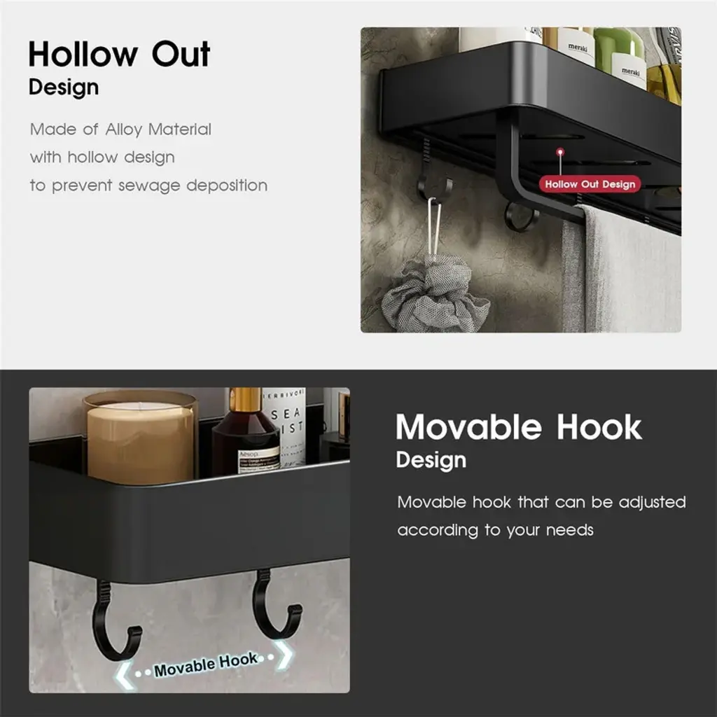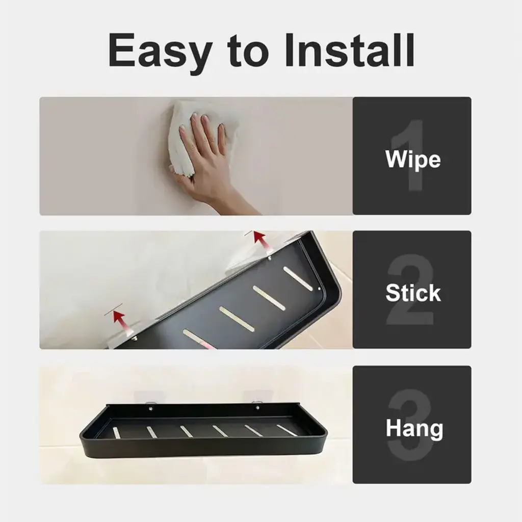 Crafted from high-quality rustproof alloy metal, these shower caddies are waterproof, rust-proof, and anti-scratch, ensuring a long-lasting and pristine appearance even in humid bathroom conditions. Easy to clean - simply wipe down the smooth surface or rinse and go! Our extra-large shower caddy, measuring 15.74 inches in length, offers ample space for all your toiletries. Store body wash, shampoo, conditioner, facial cleanser, and more. Organize your bathroom essentials without taking up much space. bathroom caddy for shower is super easy in 3 steps. All you need to do is wipe off the desired location, attach the adhesive tape to the wall, and hang up the rack.Drill-free bathroom shelf organizer is equipped with 4 ultra-powerful adhesive stickers, each capable of holding up to 14 lb that is more reliable than the shower caddy with suction cups! Just stick them to any smooth shower surface, and they will stay put without drilling or tools required. Besides, you can easily remove the wall-friendly adhesive tape with a hair dryer. We provide two easy installation methods suitable for nearly all wall surfaces. For smooth surfaces like ceramic tiles, marble, and glass, use the nail-free adhesive sticker for a strong and lasting hold. For textured walls (e.g., plaster or painted), we include extra nails for a secure installation. Enhance your bathroom's style with the sleek and elegant design of our shower caddy. Its premium appearance adds a touch of luxury to your shower area.