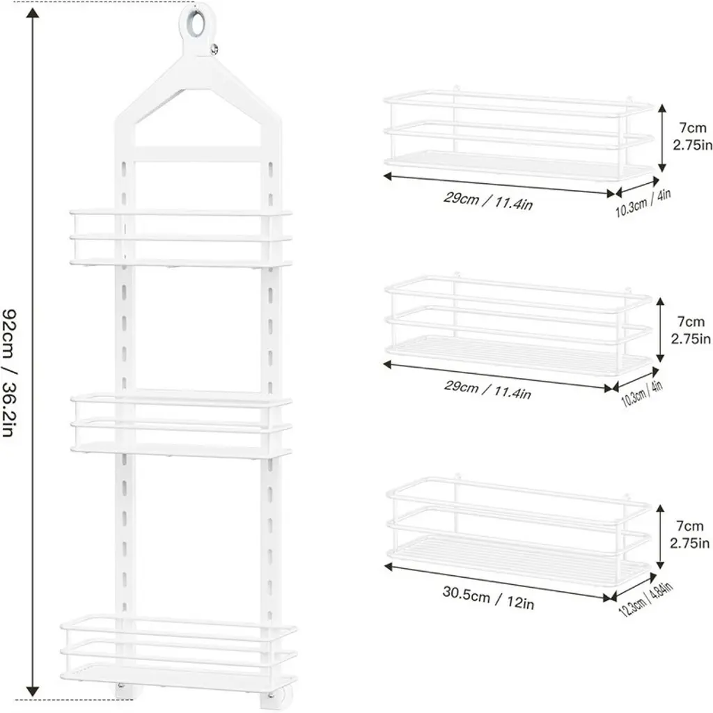 Shower Rack Organizer, Adjustable Non-Slip Hanging, Rustproof Bathroom Hanging Shower Organizer - White - 3 Tier