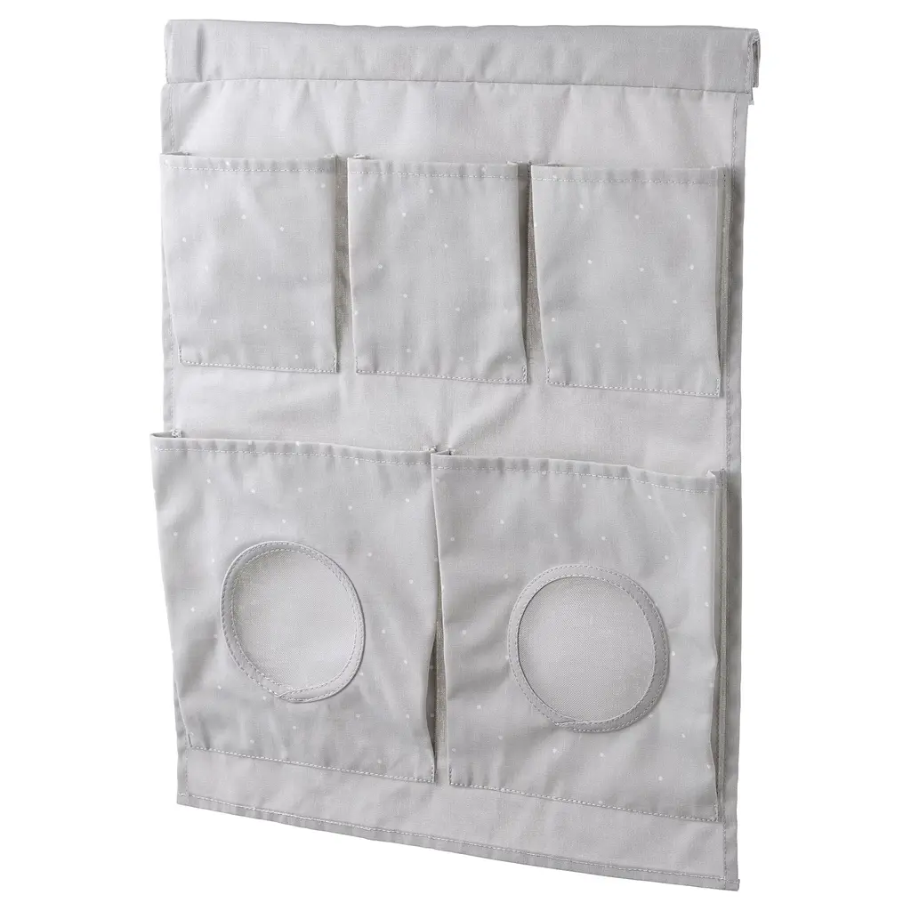 SKUBB Organizer with 6 compartments - dark gray 13 ¾x17 ¾x49 ¼ ". This product is made of polyester, of which at least 90% is recycled. The hook and loop fastener makes it easy to hang up and move. It is easier to pull the boxes out of the compartments if you hold on to the strap at the bottom.