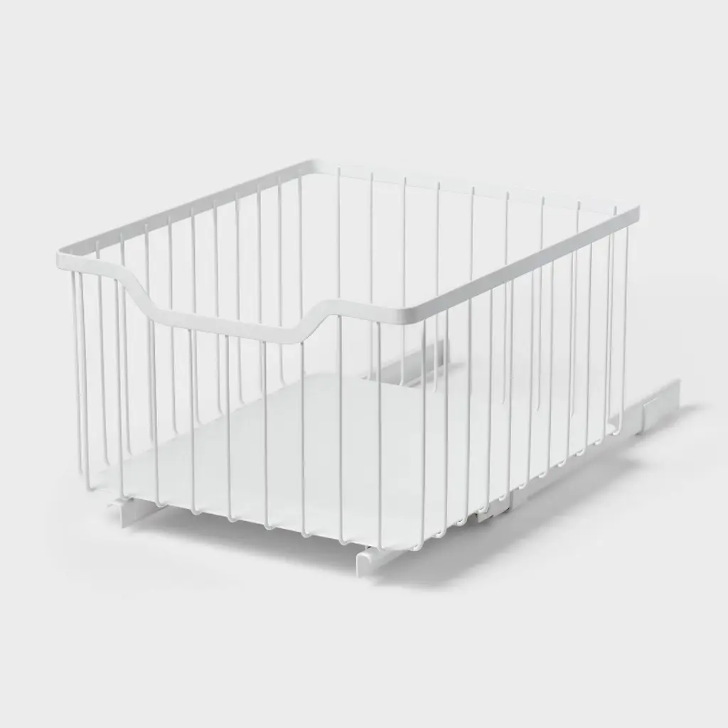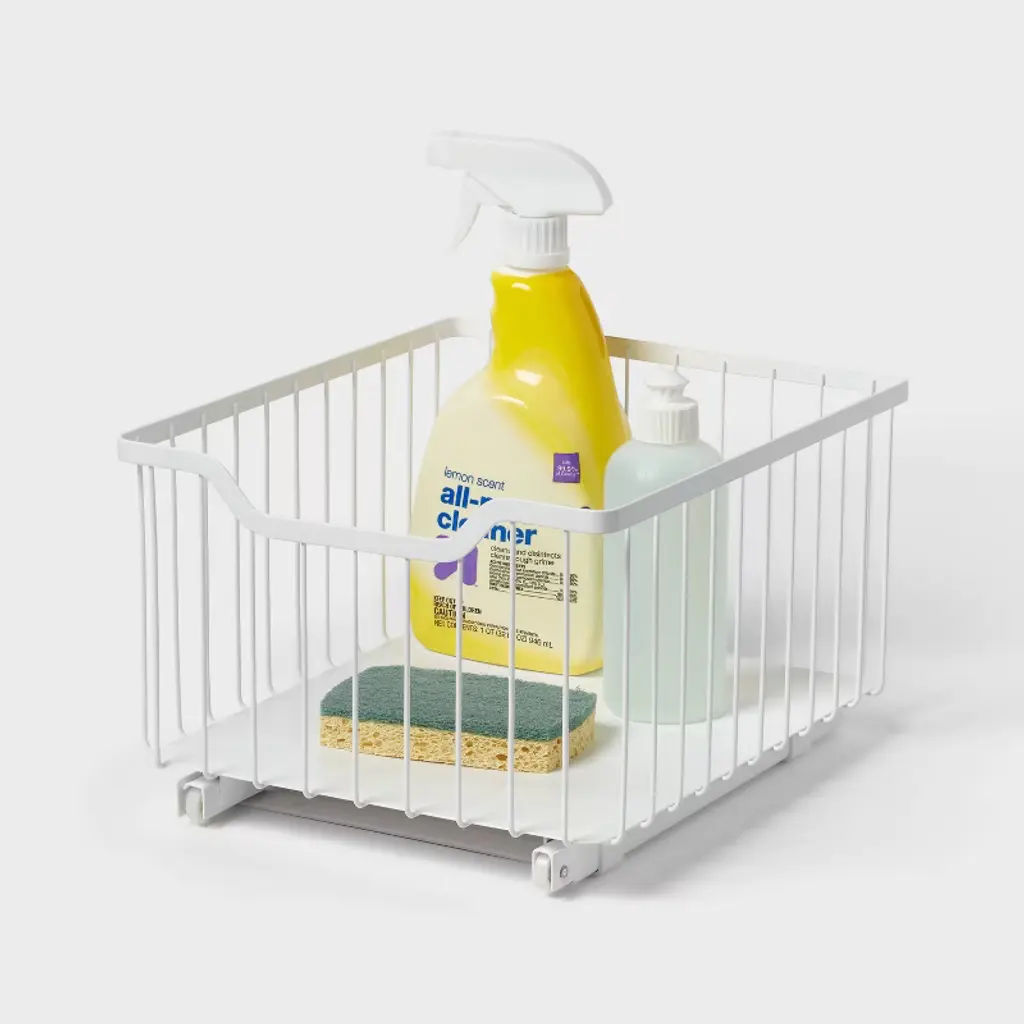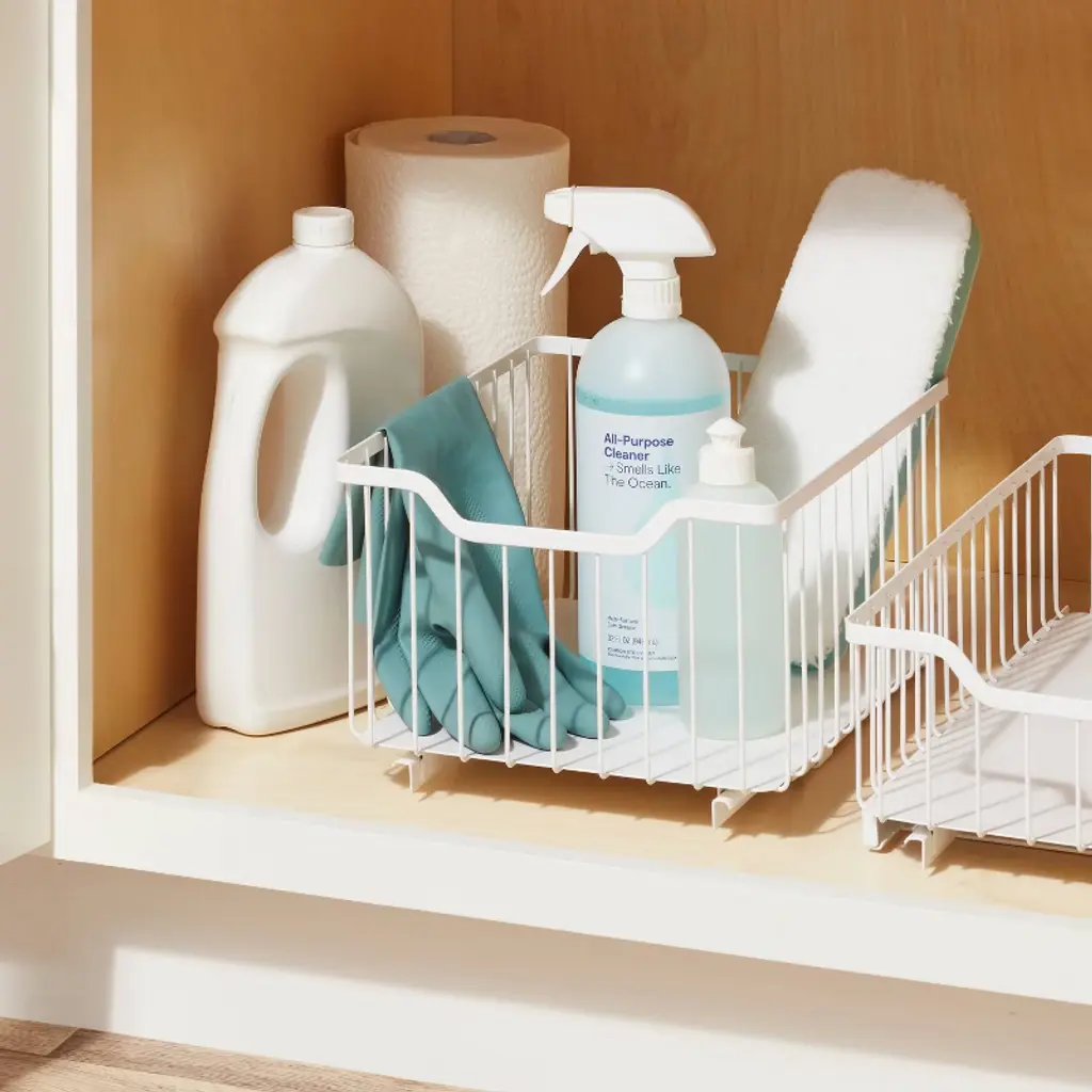 Utilize the space under your sink for organization with the Sliding Metal Under-the-Sink Kitchen Organizer from Brightroom™. This kitchen organizer features a wired design with an open top and front cutout for easy organization of your cleaning essentials, brushes and more. Made of metal, it easily slides under the sink to help keep the contents organized out of sight.Brightroom™: See your space in a new light.